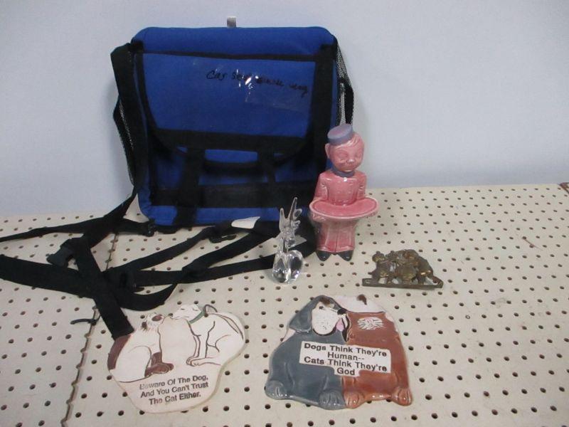 Lot 197 - Dog & Cat Plaques - Car Seat For Small Dog - Monkey Decanter