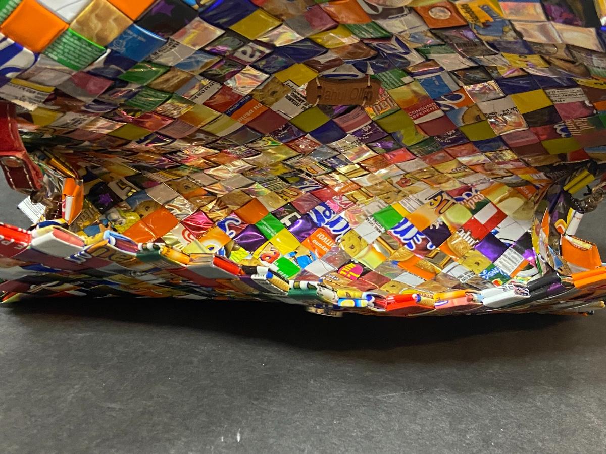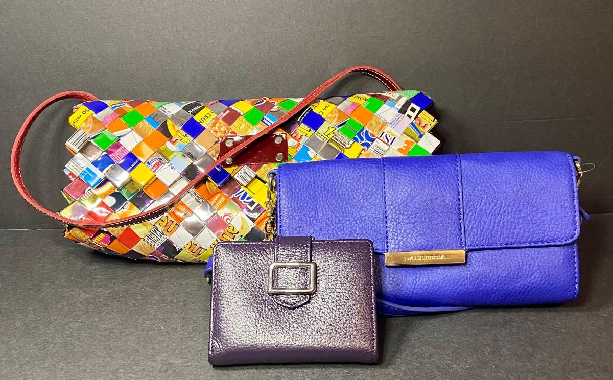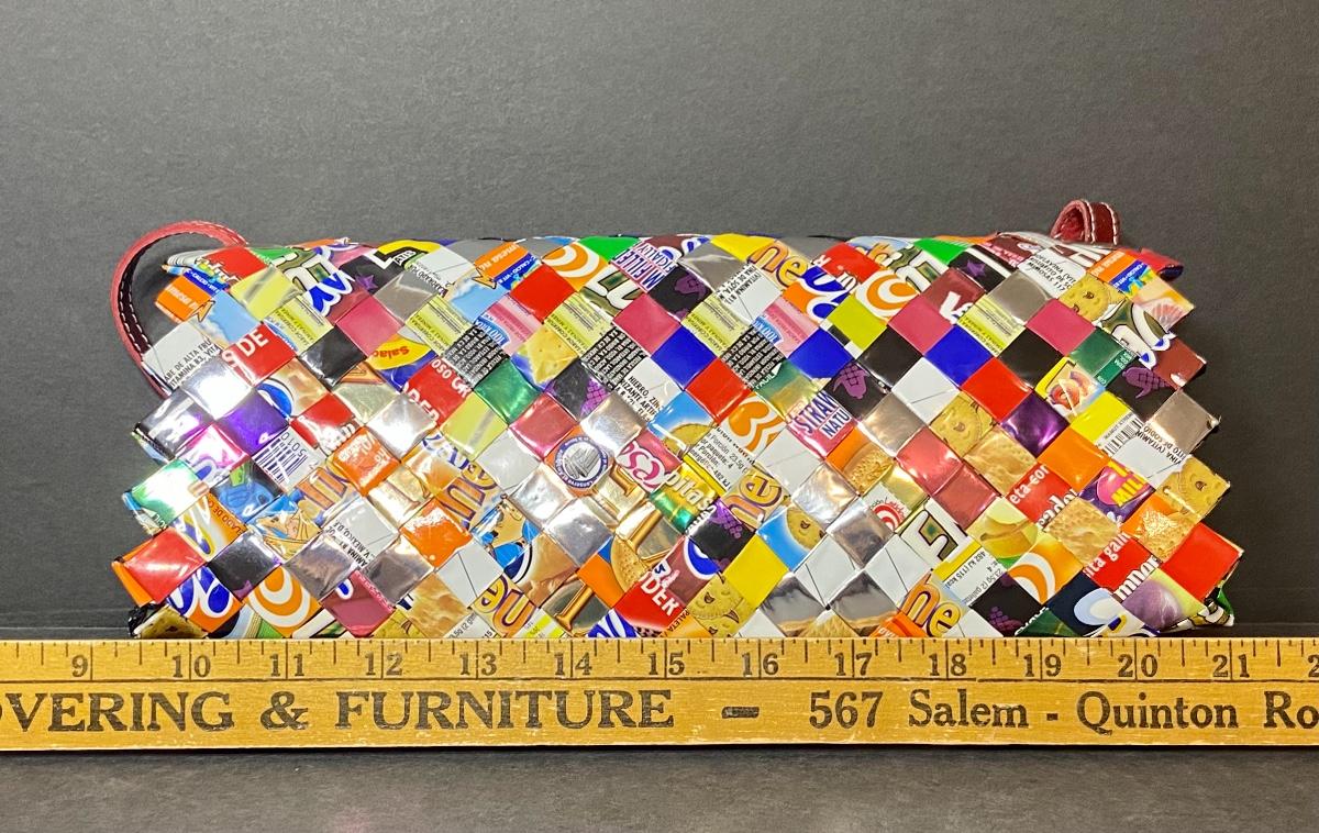 Multi colored bag is made from candy wrappers, Liz Claiborne wristlet, and wallet. Please see all pictures as they are the best representation of the items. The pictures show condition, measurements if taken, and what is included in the lot. Due to the large amount that we photograph and the time frame, we are not always able to take measurements. All items unless noted, are pre-owned and have been used. If you purchased furniture, you must bring help. We do not allow one person to carry large furniture out on their own. Bring help, tools and a truck for the safety of our client’s homes, and your personal safety. Company policy. Thank you