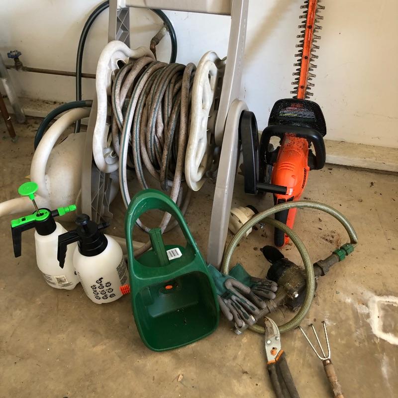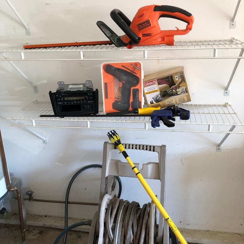 Lots of useful items for your home, vehicles and your garden in this lot. See images for everything that is included, but to name a few, Black & Decker hedge trimmer, IKEA Cordless drill, Honda car stereo, lots of tools, painting supplies, Coleman electric air pump, clamp and more.