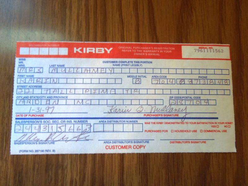 Very nice condition 1997 model Kirby vacuum with all the extras. Many attachments and complete boxed carpet shampoo system. Has original receipt and registration for guaranteed warrantee. Sold for $1500.