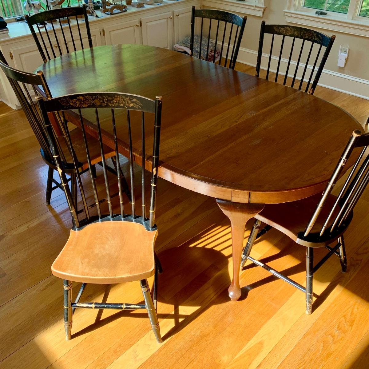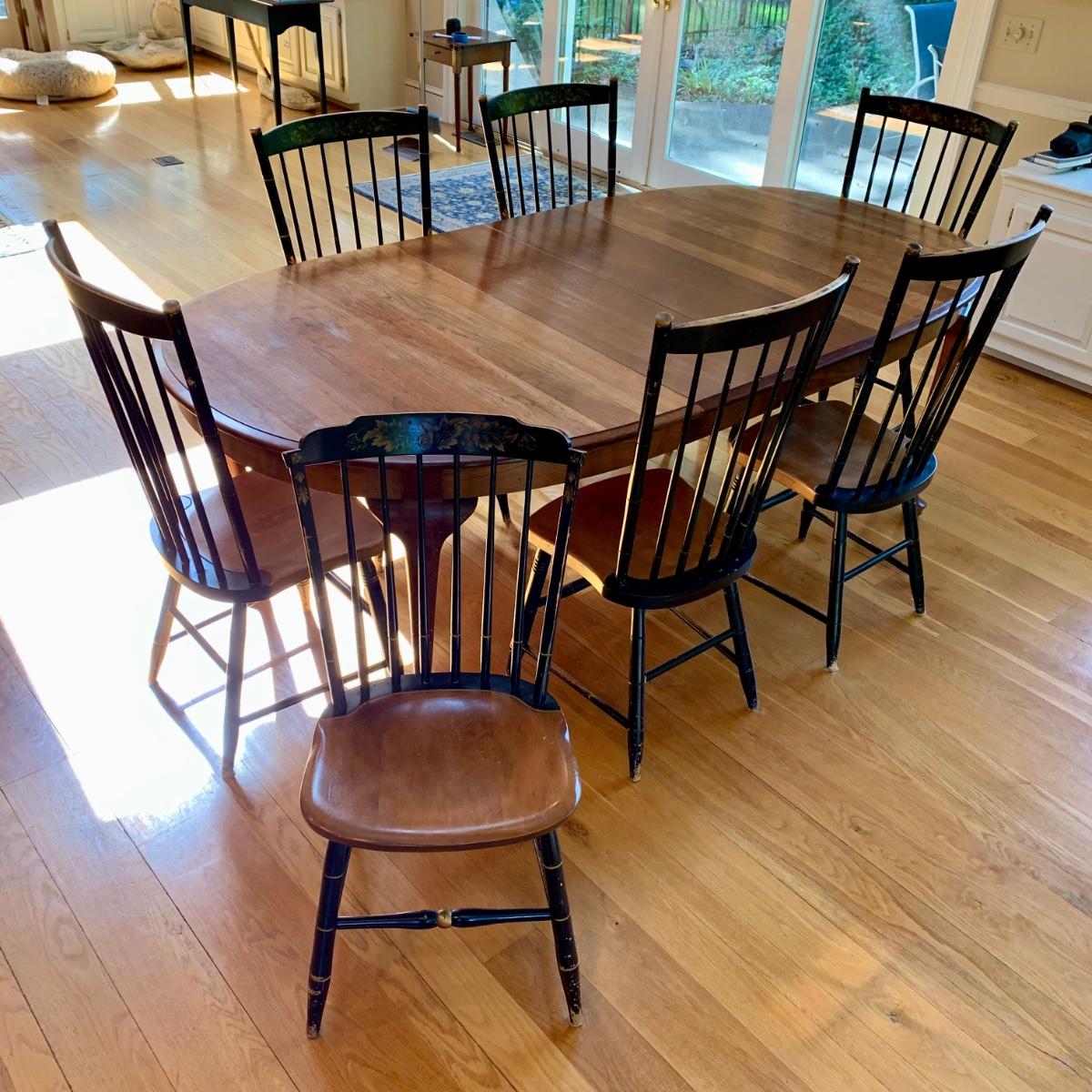 LOT 197 L: Dining Room Set: Long Oval Table w/ 6 Hitchcock Dining Chairs & 1 Hitchcock Side Chair