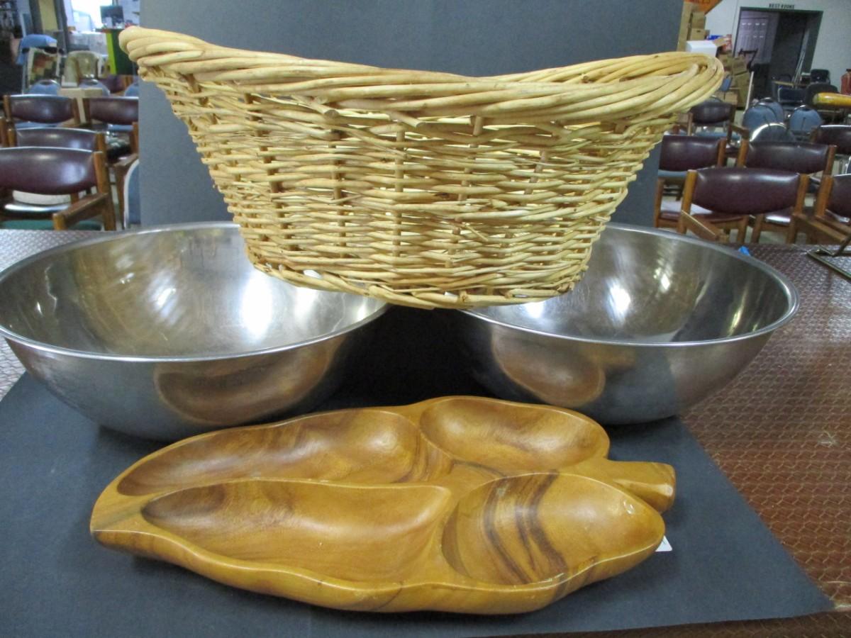 Lot 197 - Large Mixing Bowls - Wooden Serving Tray & Basket