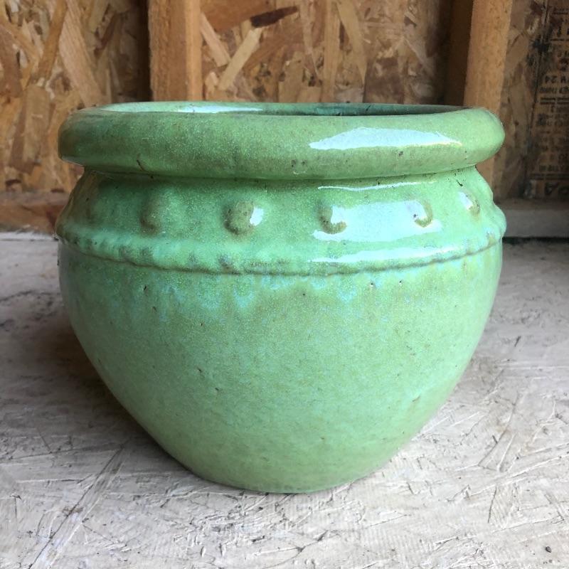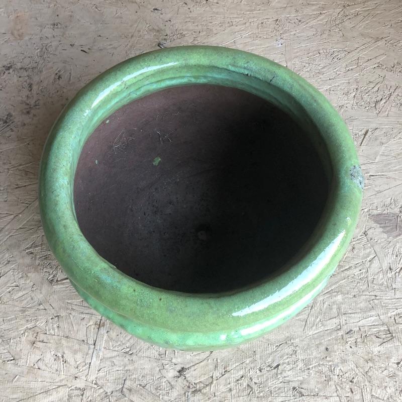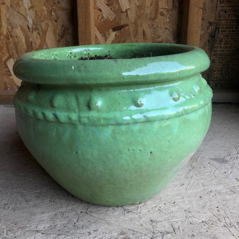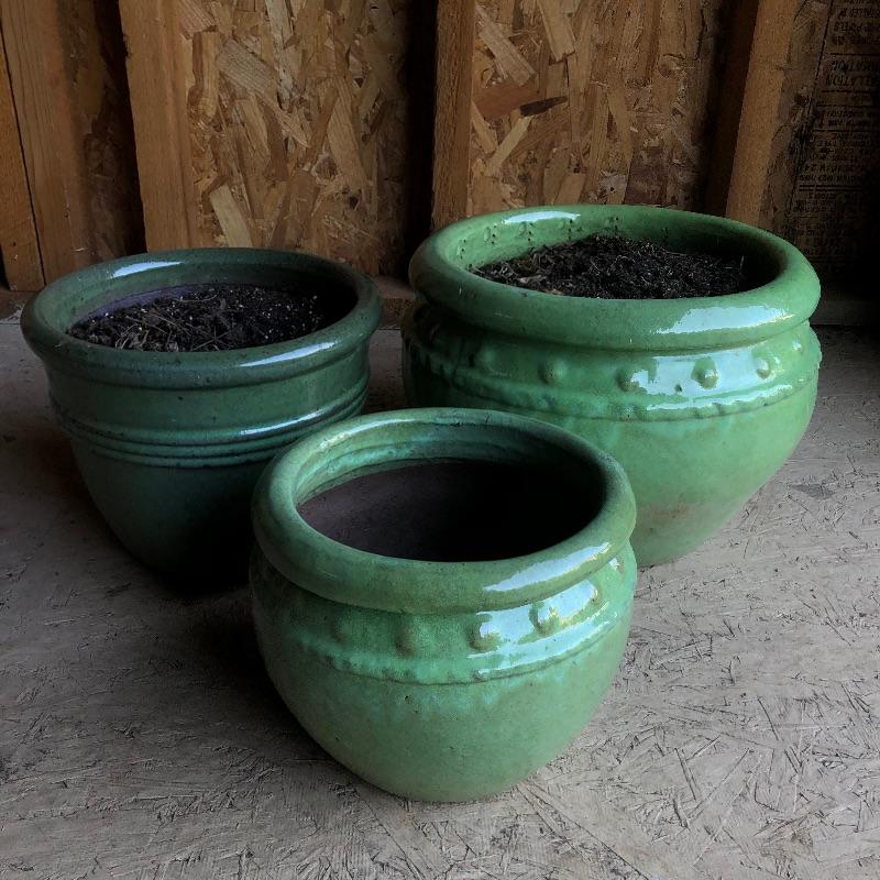 Lot includes 3 green pottery planters. These fun pots make great outdoor decor. Use these to plant your favorite flowers or herbs. Largest pot measures 15.5"D x 11"H.