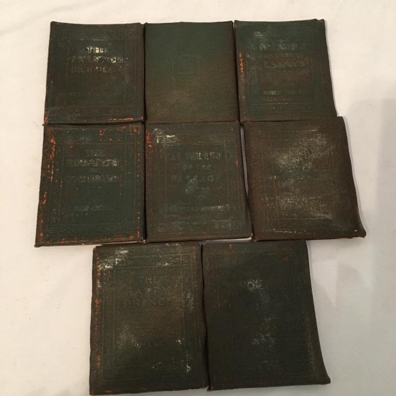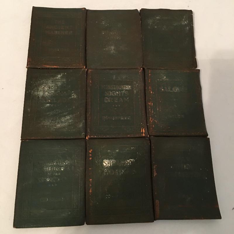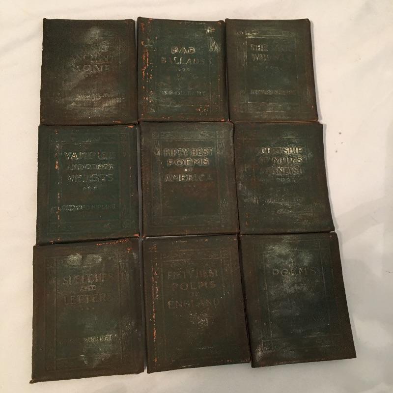Antique Little Leather Library books and mini case includes 26 books from a variety of authors including Rudyard Kipling, Robert Browning, Longfellow, Oscar Wilde, Shakespeare and more.