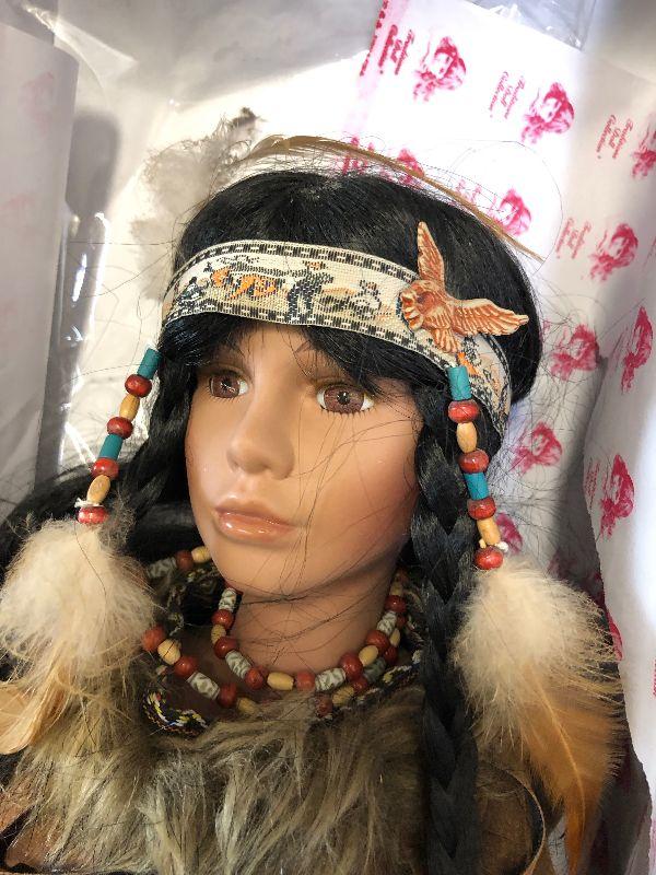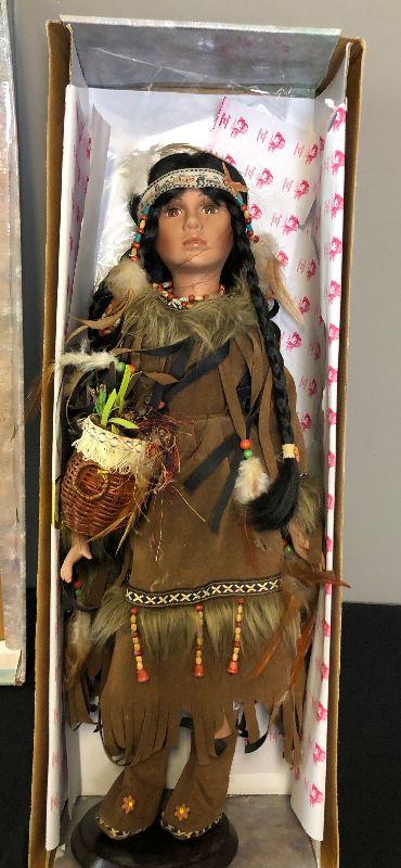 Lot # 197 Native American Porcelain Doll with Basket In Tradition Dress