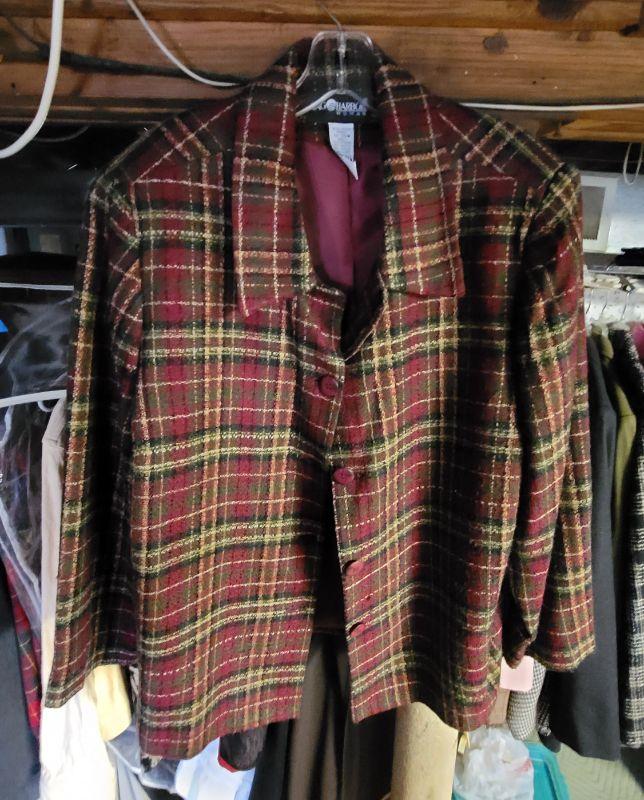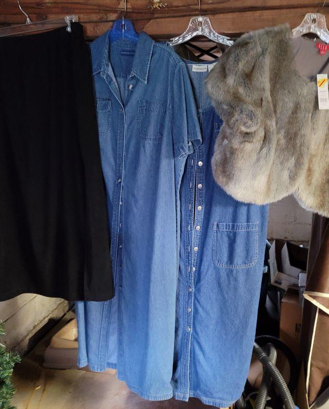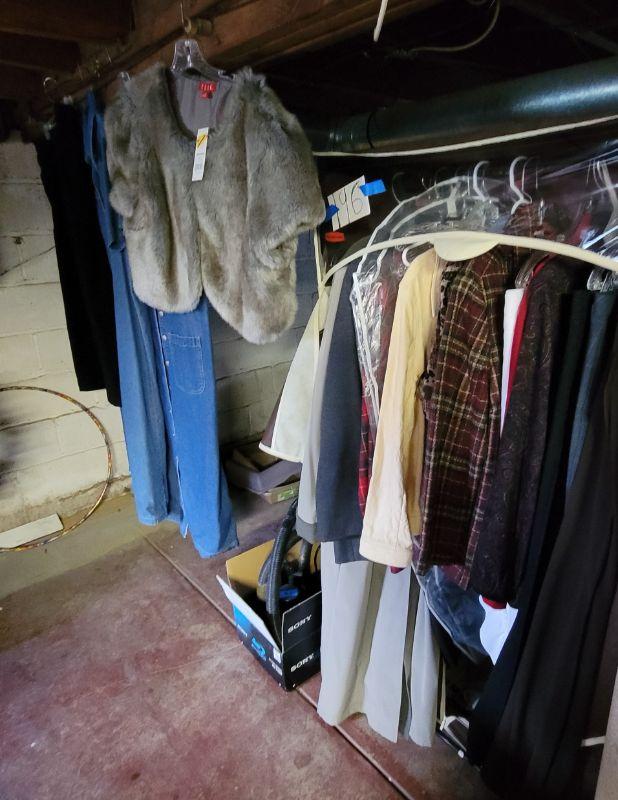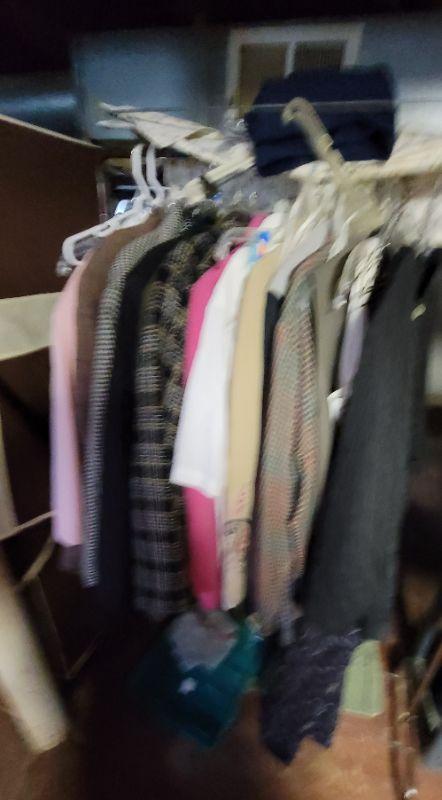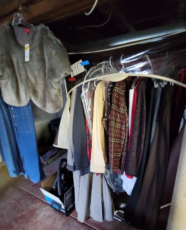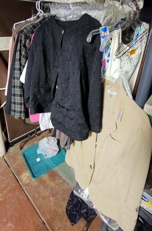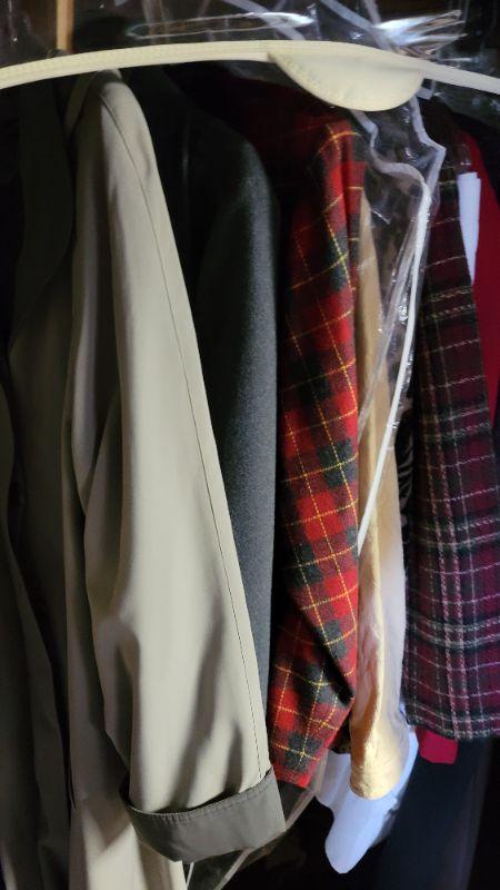 Lot 196: Rubbermaid zip close Wardrobe, rack, Ladies 1 and 2x clothing, coats , jackets, blouses, blazers, pants, suits,, sweaters and dresses