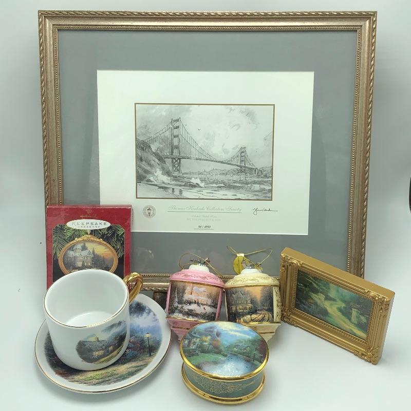 This lovely assortment of Thomas Kincade collectibles is a must have for any fan of his work this holiday season.
