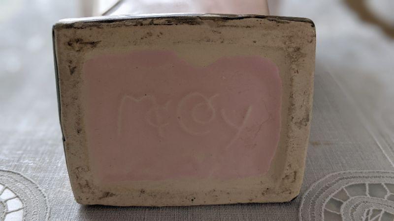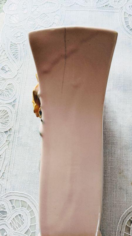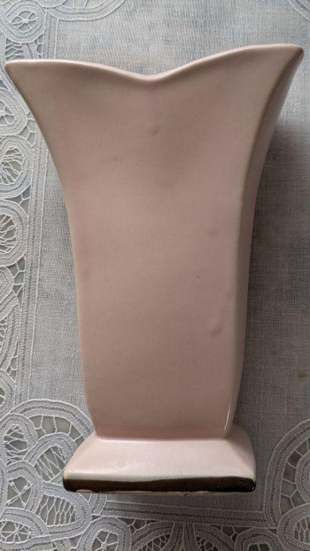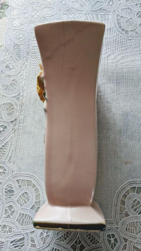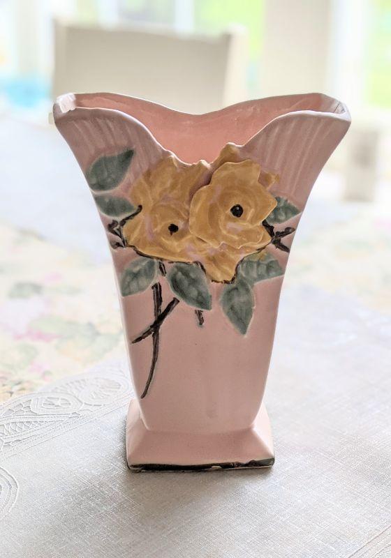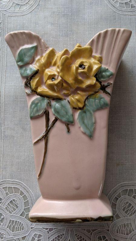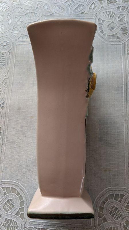 Lot 197 Vintage Wild Rose McCoy tall vase Pink with yellow flowers