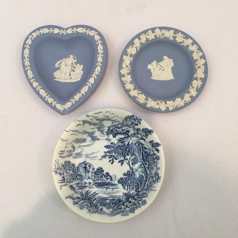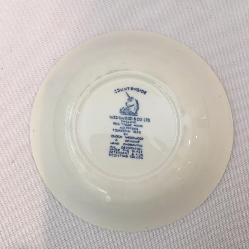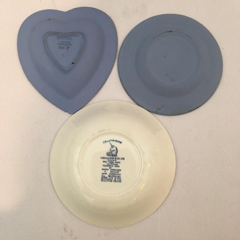 Wedgewood array includes one round and one heart shaped dish and one small dish with Countryside pattern that measures 5”D x 1.25”.
