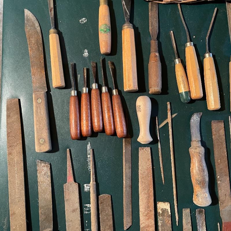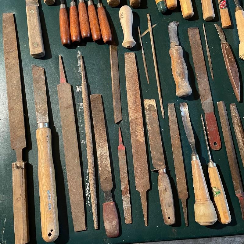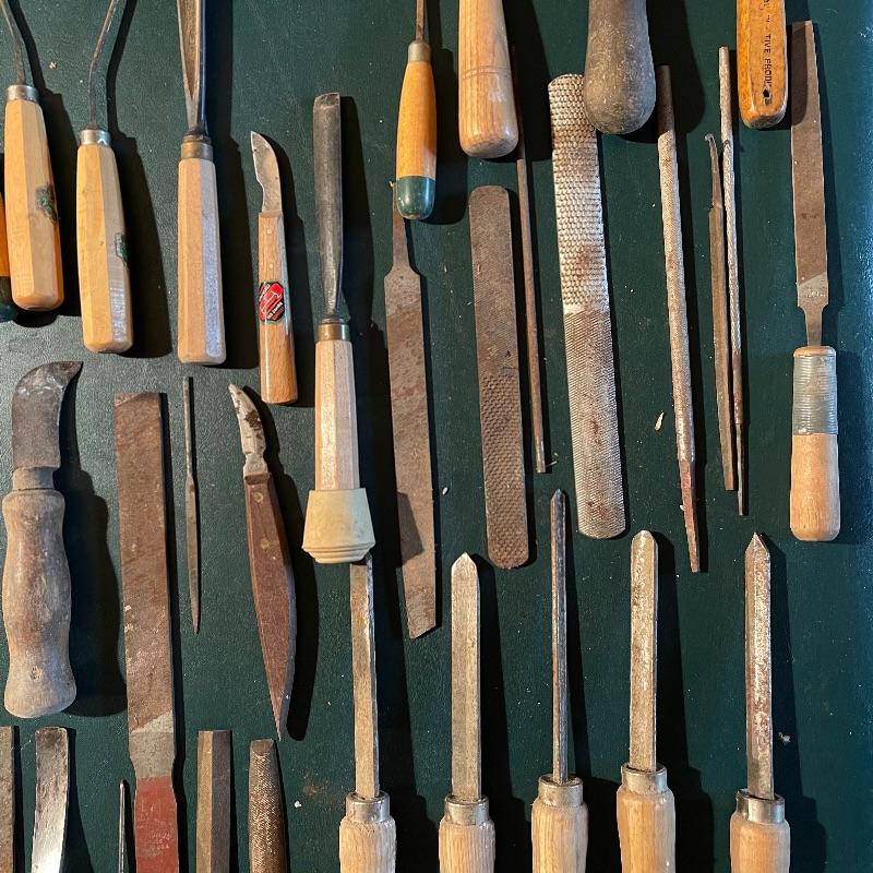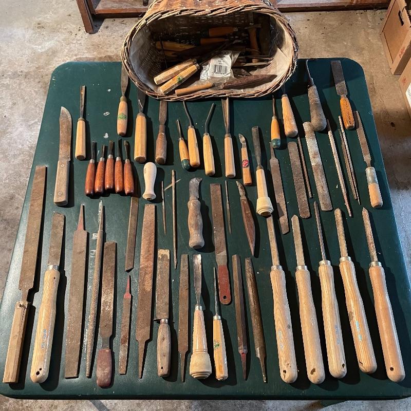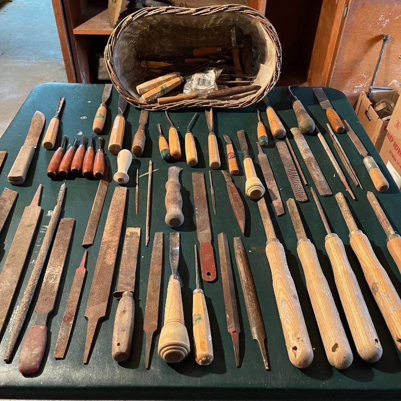 Collection of woodworking tools, files, and more. Some are in good condition and some are either just blades/files or handles. All could use a good cleaning.