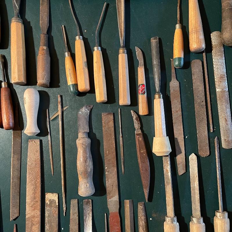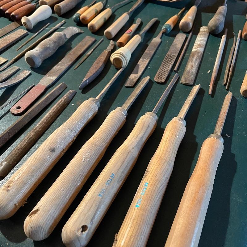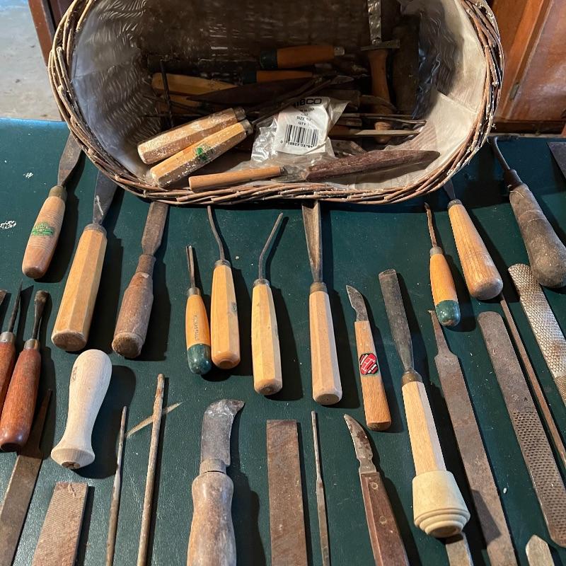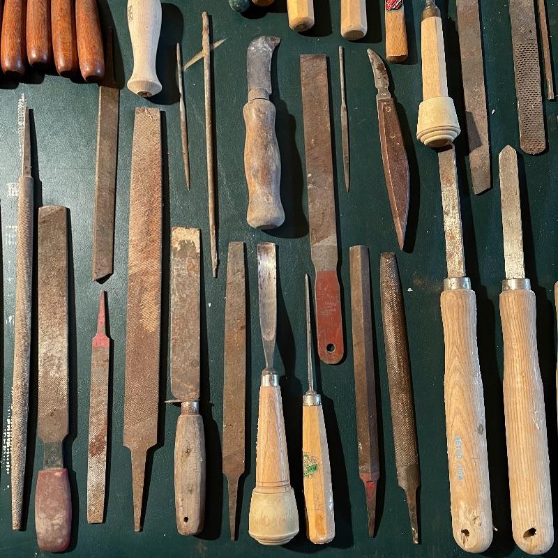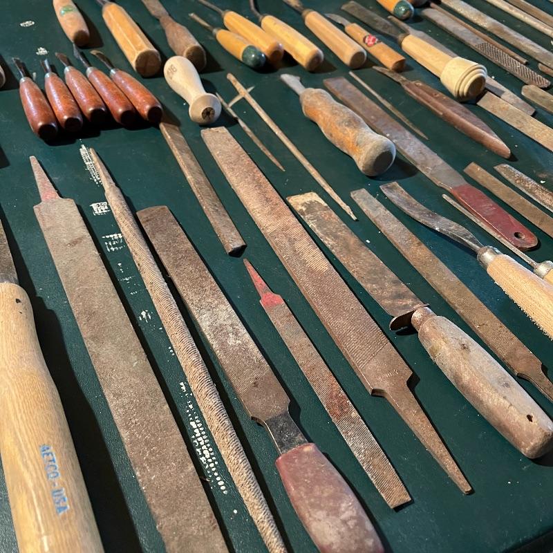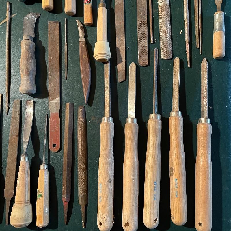 Collection of woodworking tools, files, and more. Some are in good condition and some are either just blades/files or handles. All could use a good cleaning.