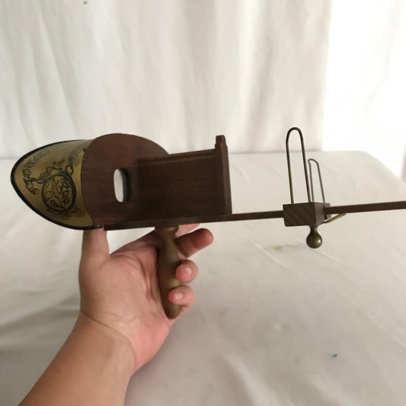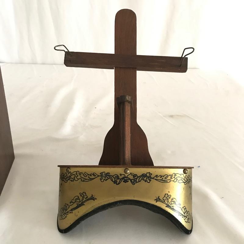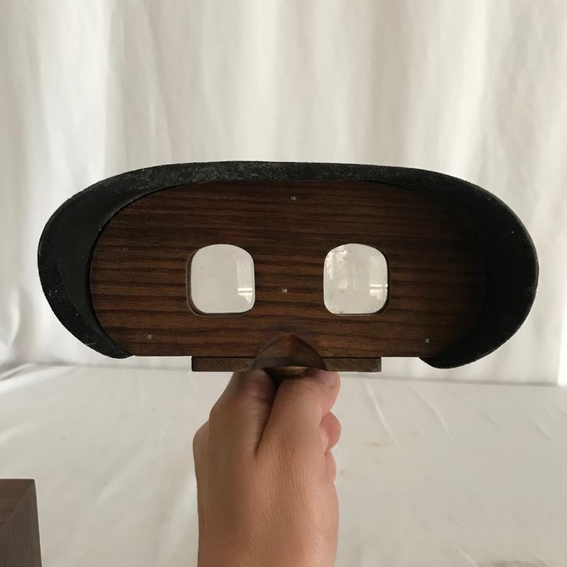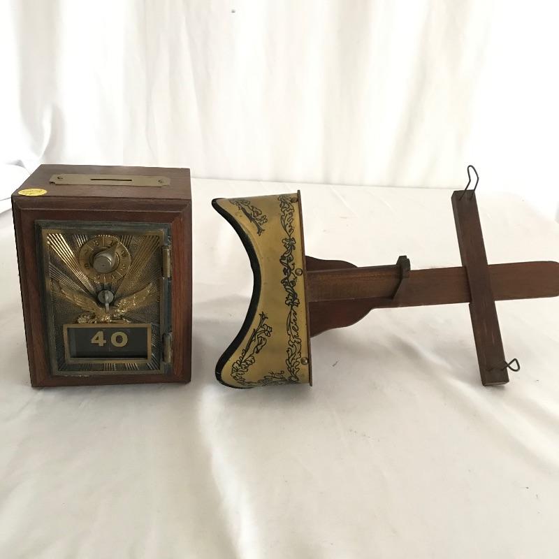Stunning wooden vintage stereoscope with metal hardware and accent pieces. Viewer appears to be in excellent condition and measures approximately 7.25” x 6.5” x 12”. The slide moves freely and appears to be able to perform its intended purpose. We’ve paired this beauty with another equally stunning wooden vintage Post Office box. Box has a sticker stating “Circa 1895” and what appears to be the box code on the base. Sterling Transitions is unable to open box. Box measures 5” x 5.5” x 6”. See photos. Shipping available.