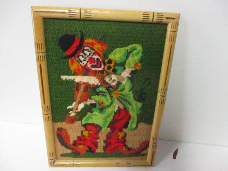 Lot 198 - Framed Clown Needlepoint 14" x 10"