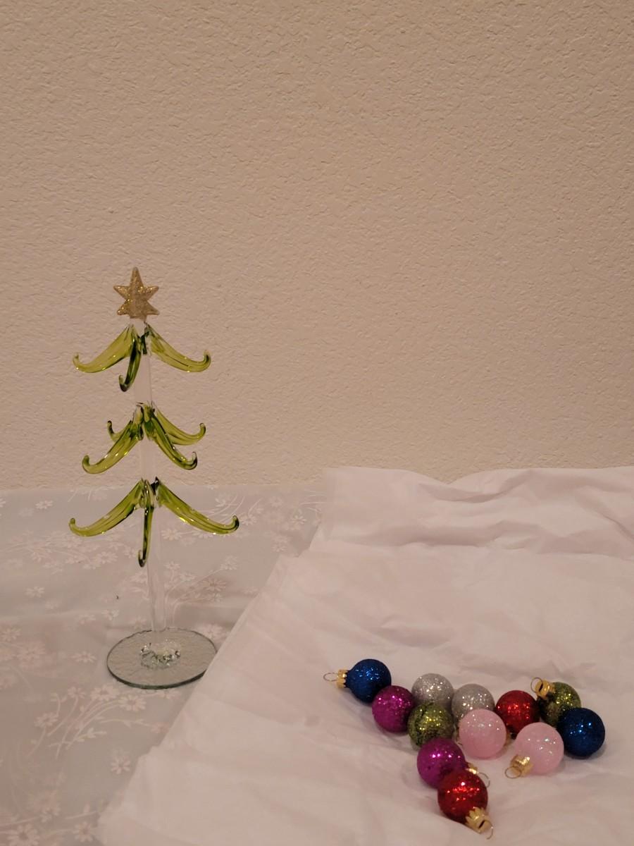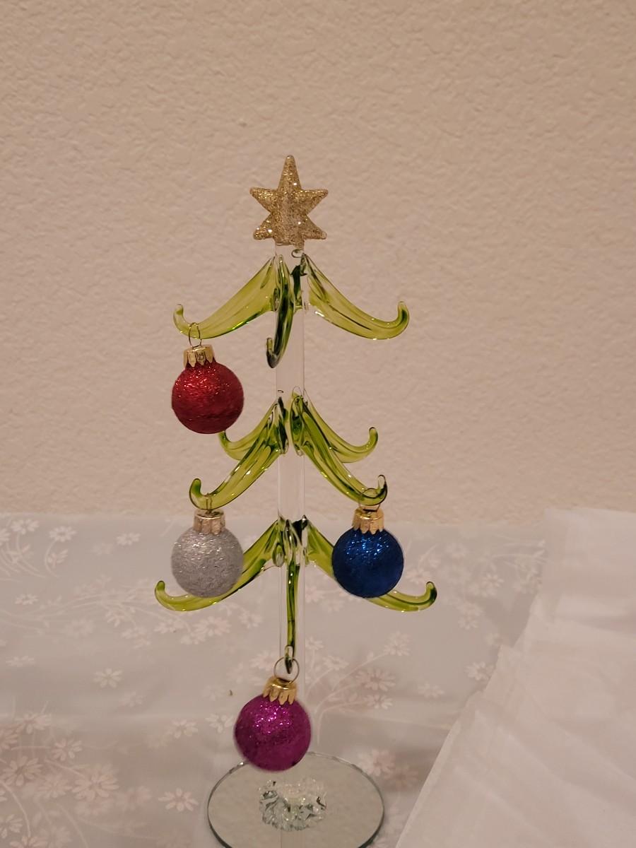 Lot 198: Glass Christmas Tree with Glass Glittery Ornaments