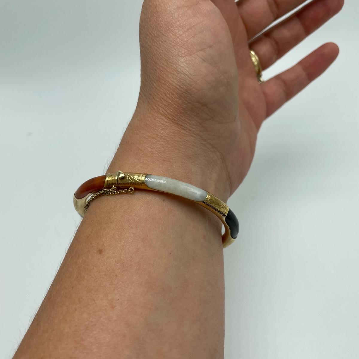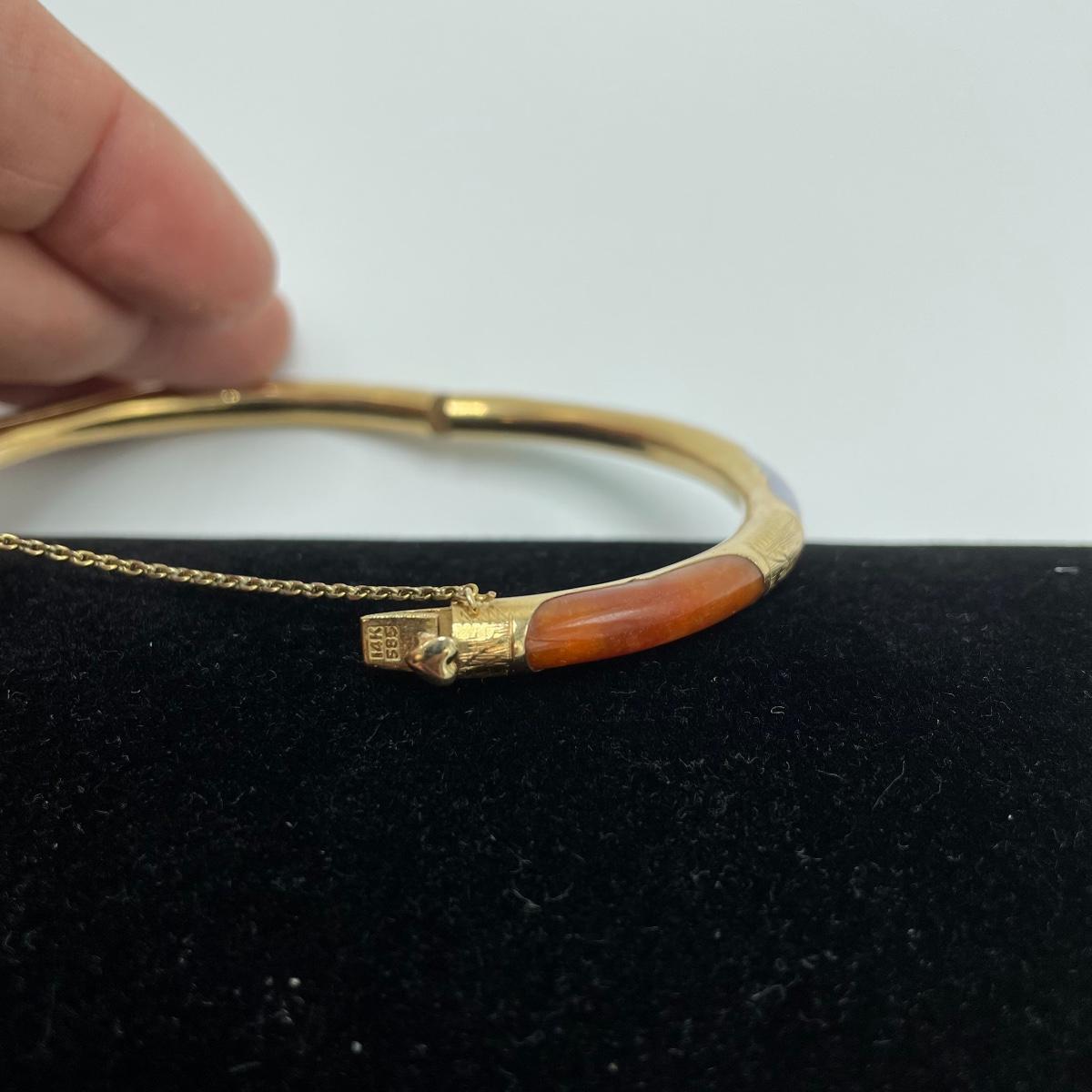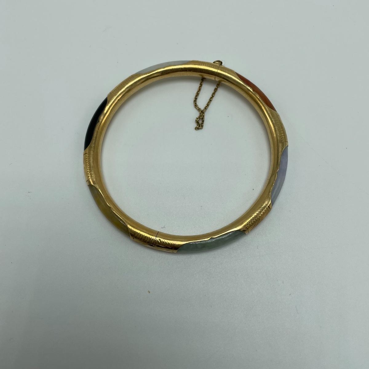 A beautiful lot filled with 14K gold and bracelet with stones. The necklace has an eastern Asian tone along with a multicolored jade bracelet. Two sets of large earrings will make a statement, both marked 14K and a simple, yet elegant 9K chain bracelet marked 375. See images. Shipping available.