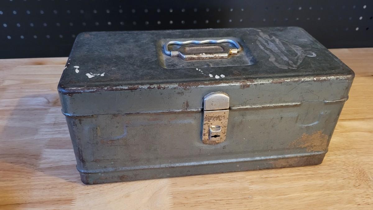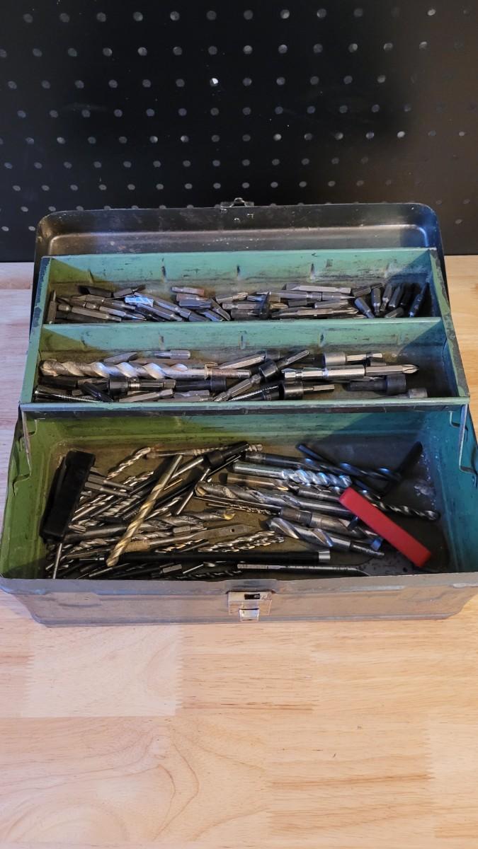 Lot 198: Vintage Toolbox w/ Assorted Drill and Driver Bits