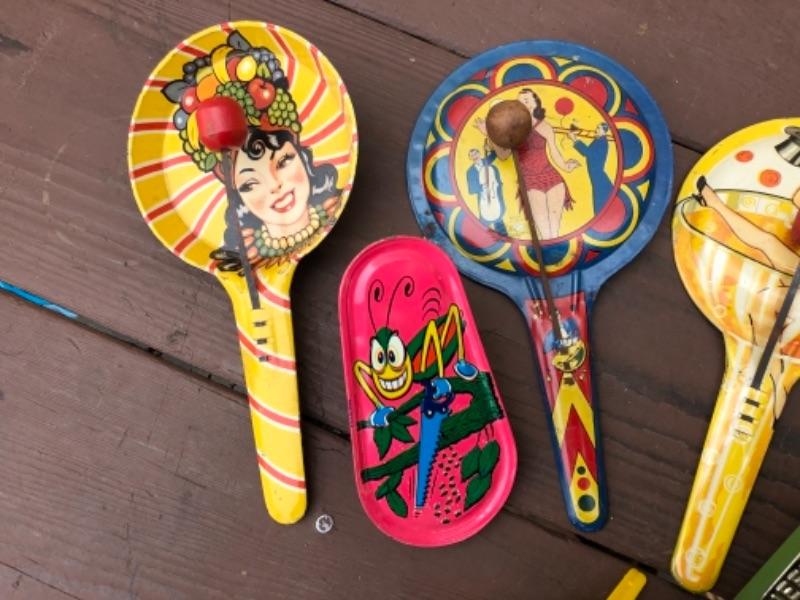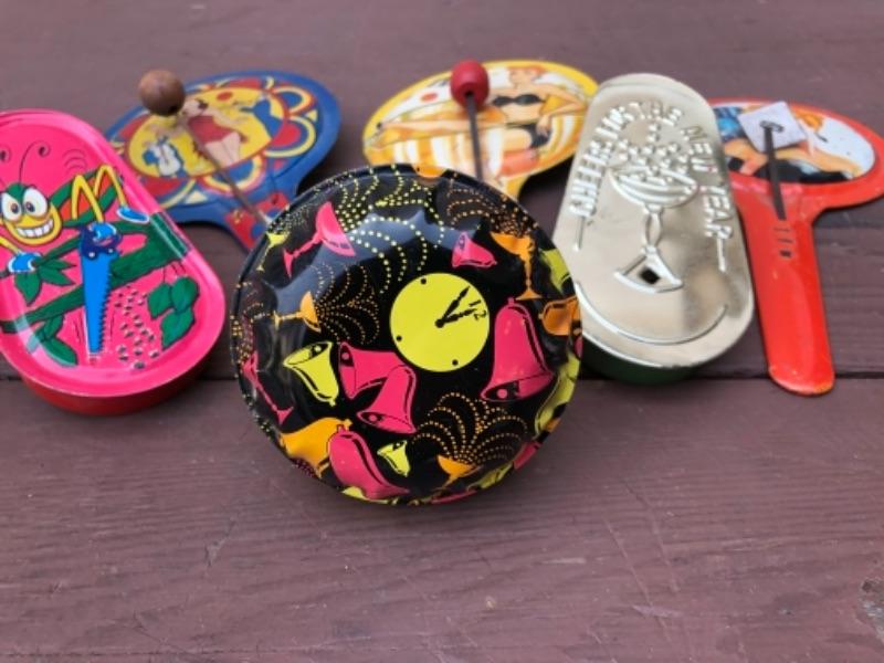 Lot 198: 6 Vintage Noise Makers, Rare: Ladies, New Years Eve Themed, 1950’s