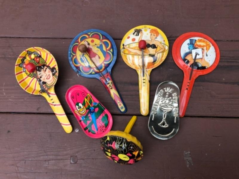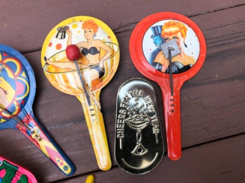 Lot 198: 6 Vintage Noise Makers, Rare: Ladies, New Year’s Eve Themed, 1950’s