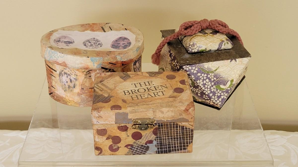 Lot 198: (3) Collaged Trinket Boxes by Mary Ann York