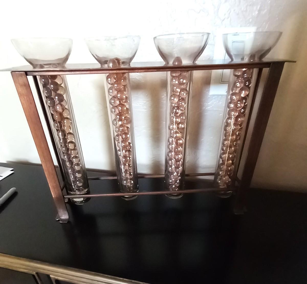 LOT 198 GLASS VASES WITH MARBLES TABLETOP DECOR
