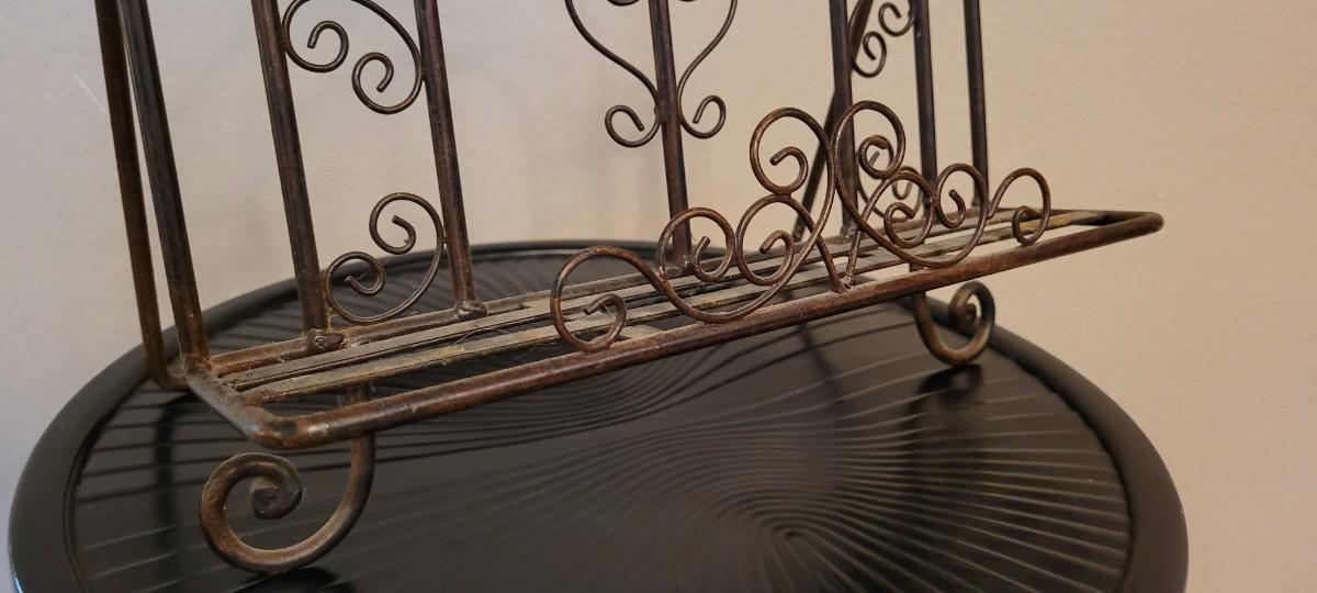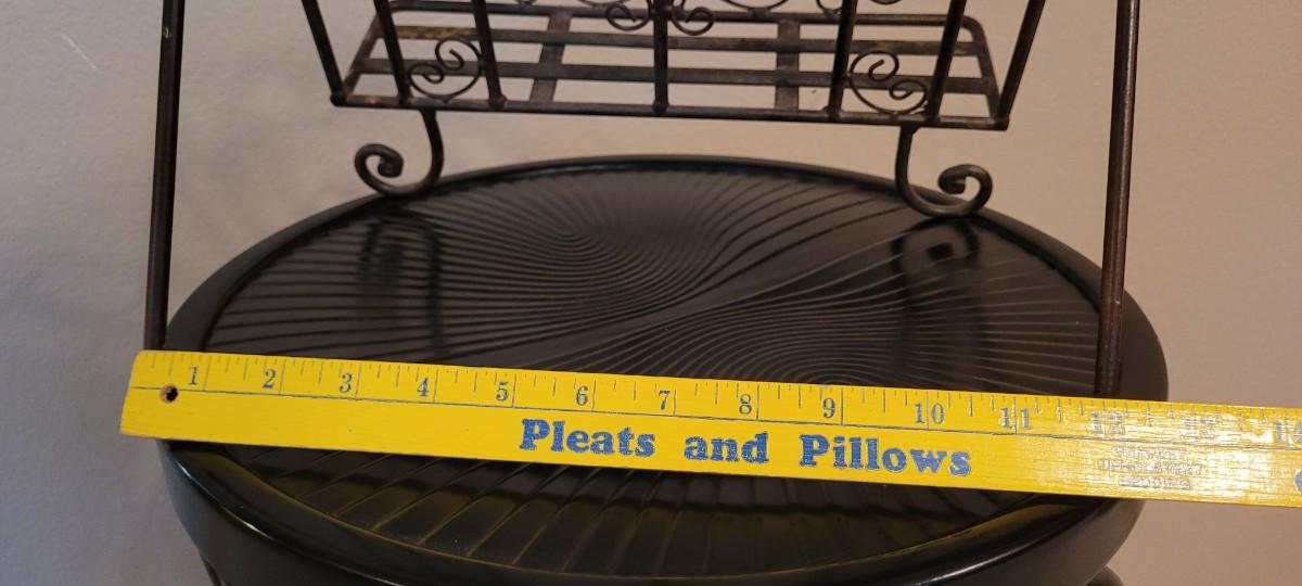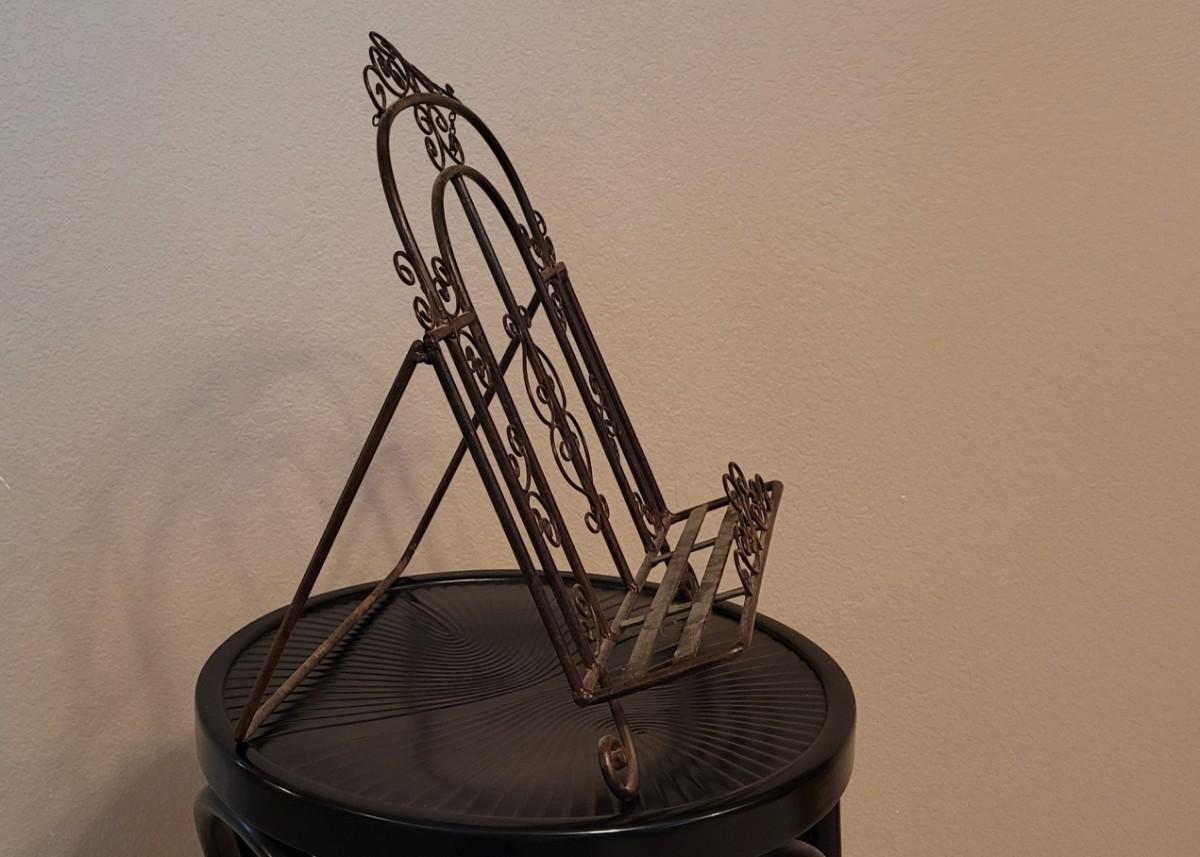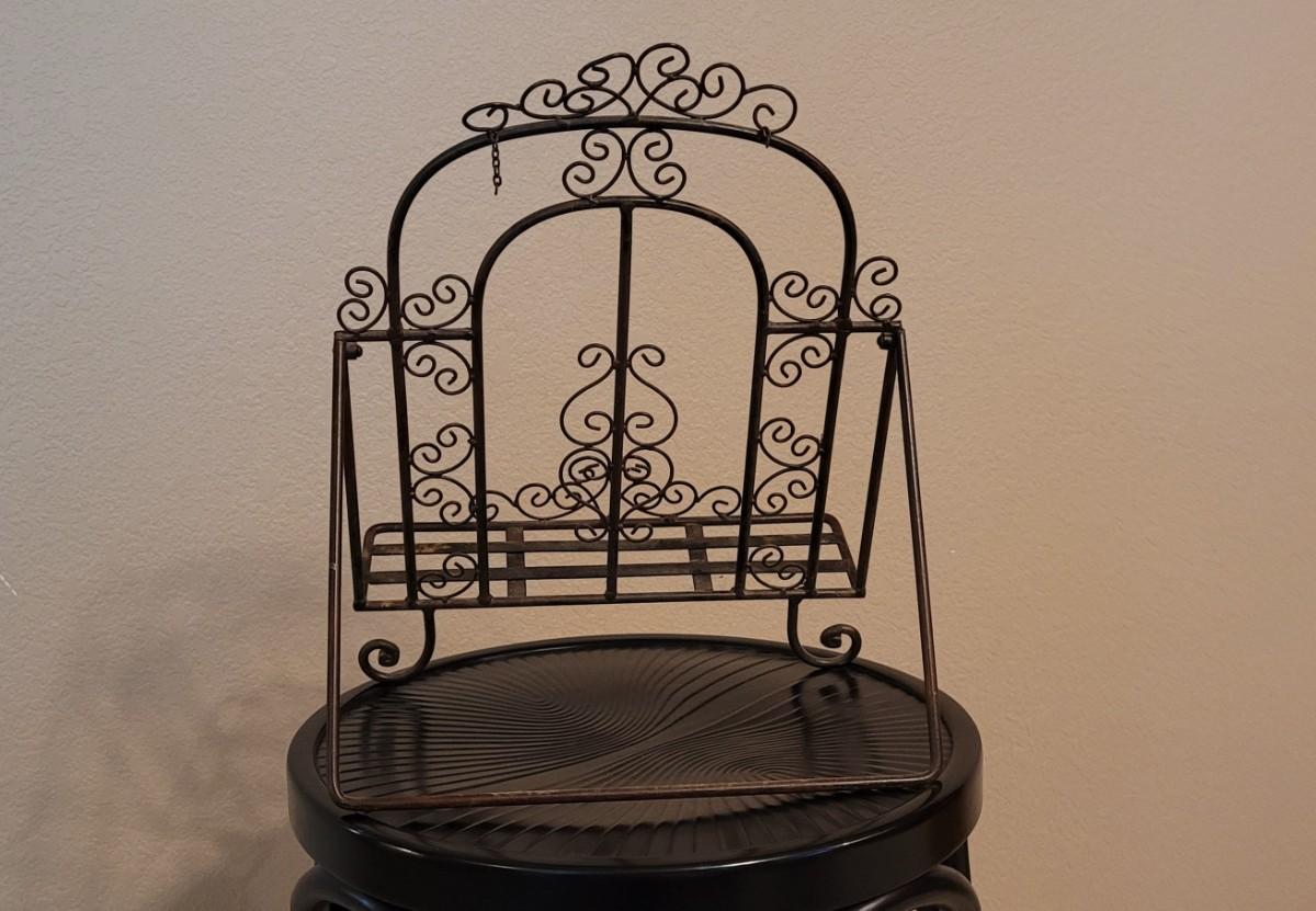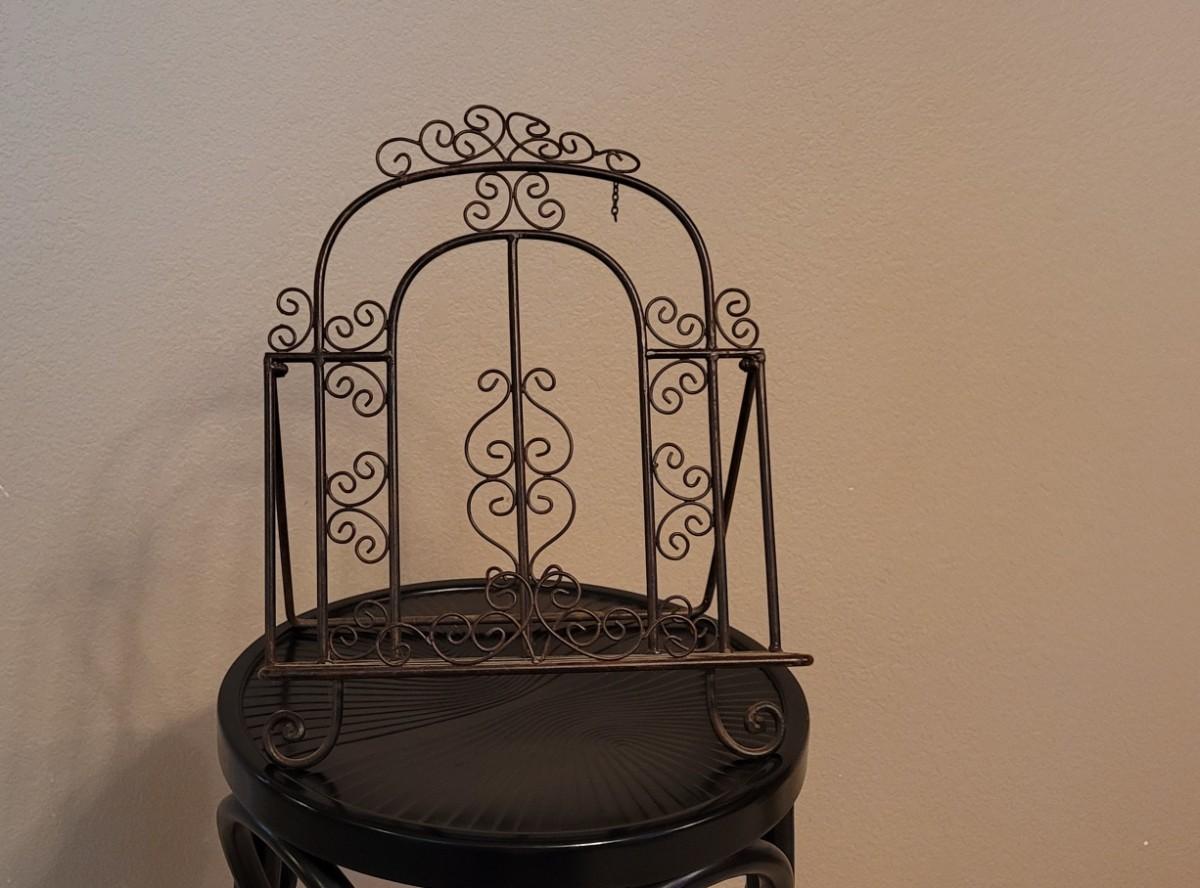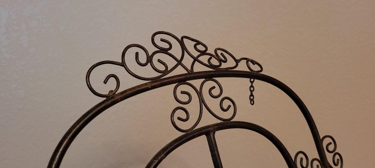 Nice Ornate Metal Display Stand that is a great weight that is not too heavy but not so much that it will mark the top of any furniture.