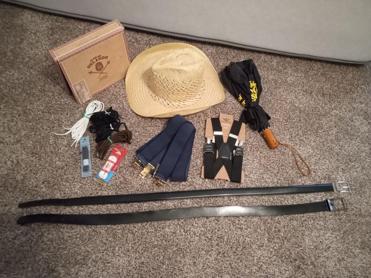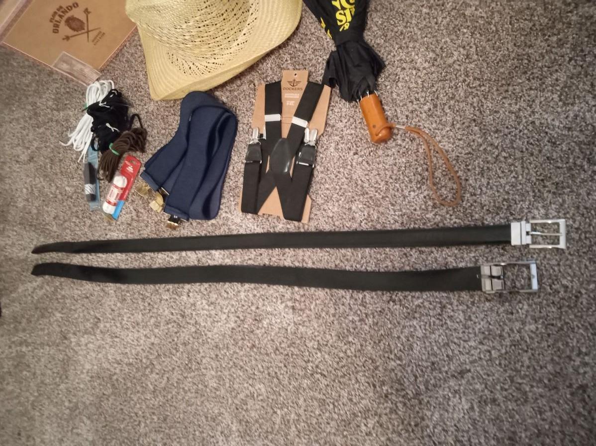 LOT 198 MEN'S BELTS, SUSPENDERS, SHOE LACES, WESTERN HAT AND MORE (Master bdr)