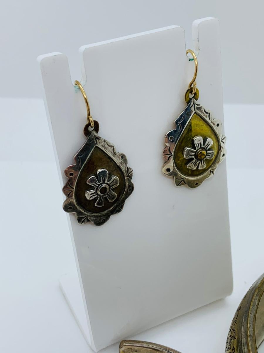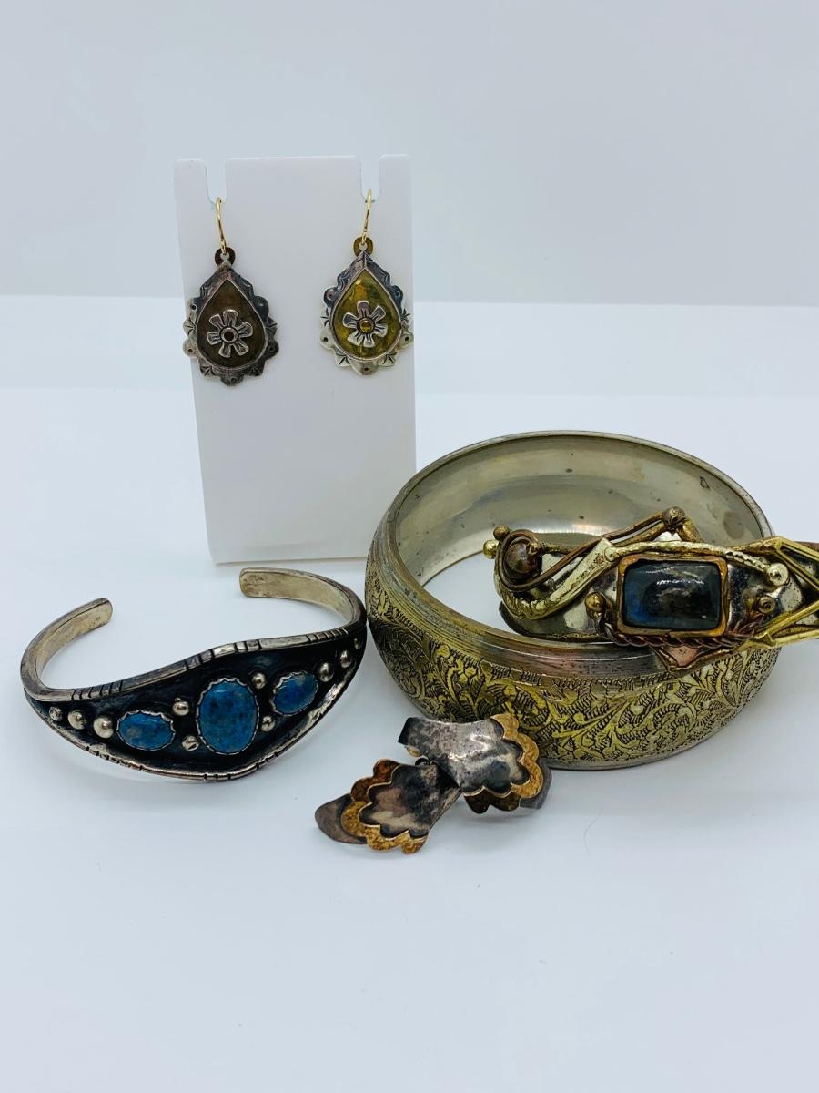 Lot 198J: Sterling Silver & 14K Earrings, Sterling & Brass Earring. Sterling Bracelet & More