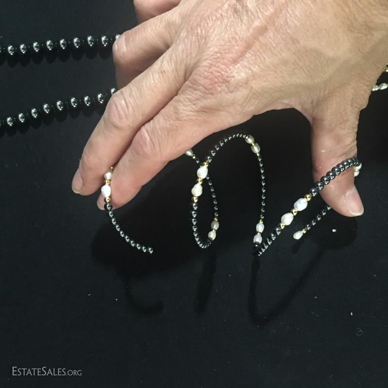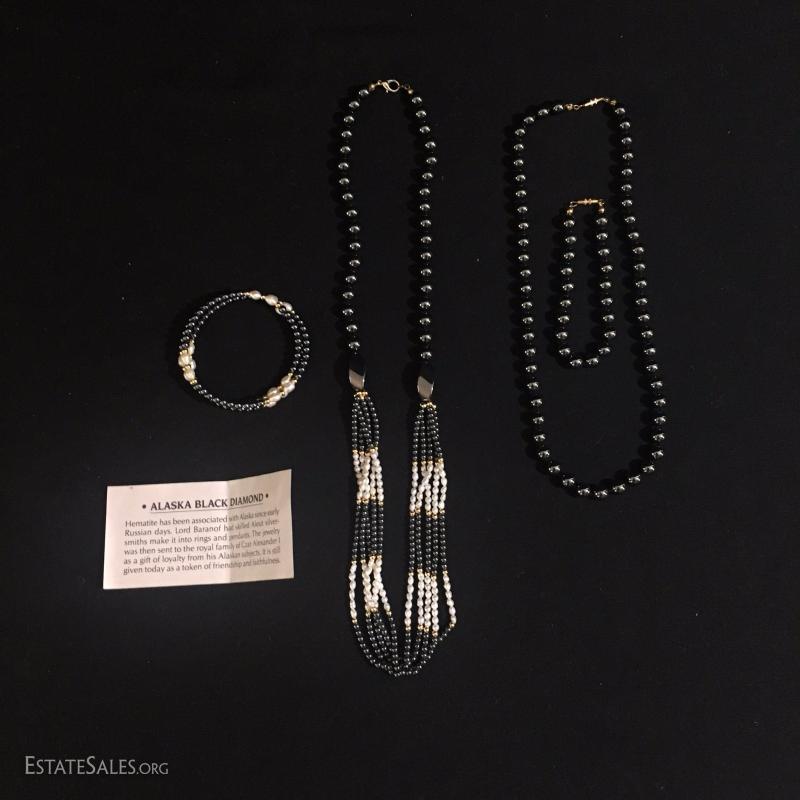 Two Necklace and bracelet sets. Come with paperwork claiming Alaska Black Diamond and Fresh Water Pearls. Excellent condition.