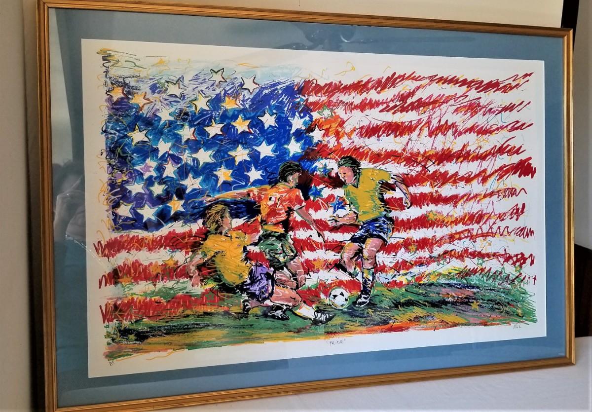 "Pride" by artist Juli Veee, Hungarian-American retired soccer forward (defected from Hungary at age 18) - he was a member of the team that qualified for the 1980 Olympics. In 1994 he was commissioned to be the artist for the World Cup. Artist's proof - 40" wide, 27" tall - well framed.