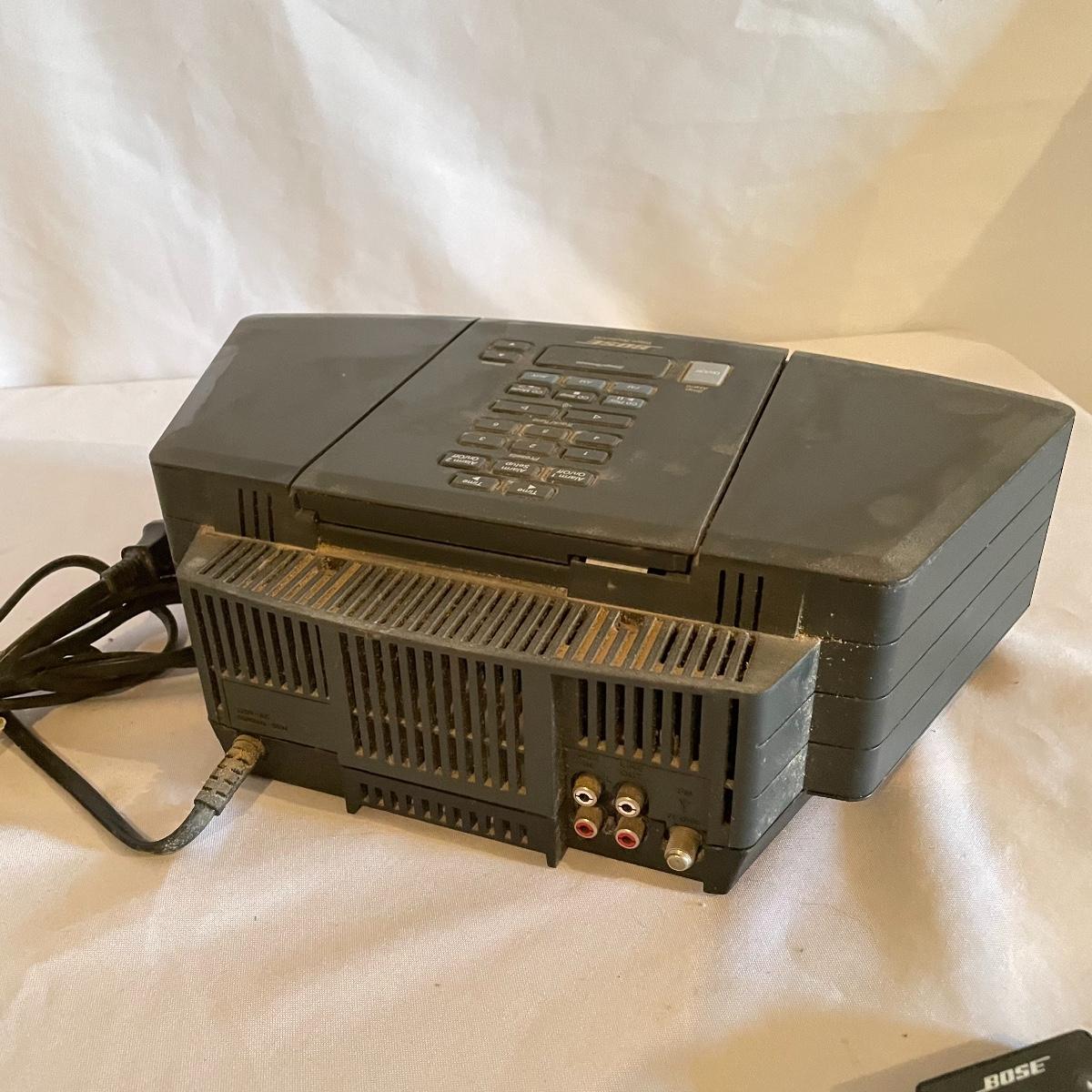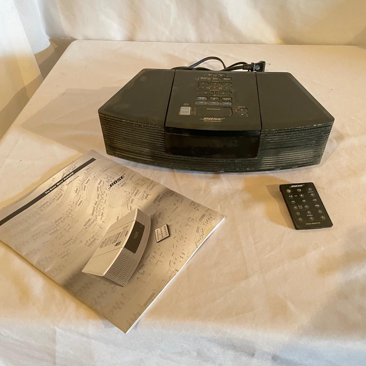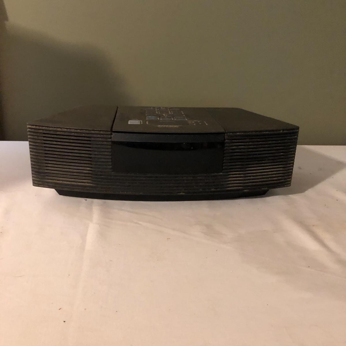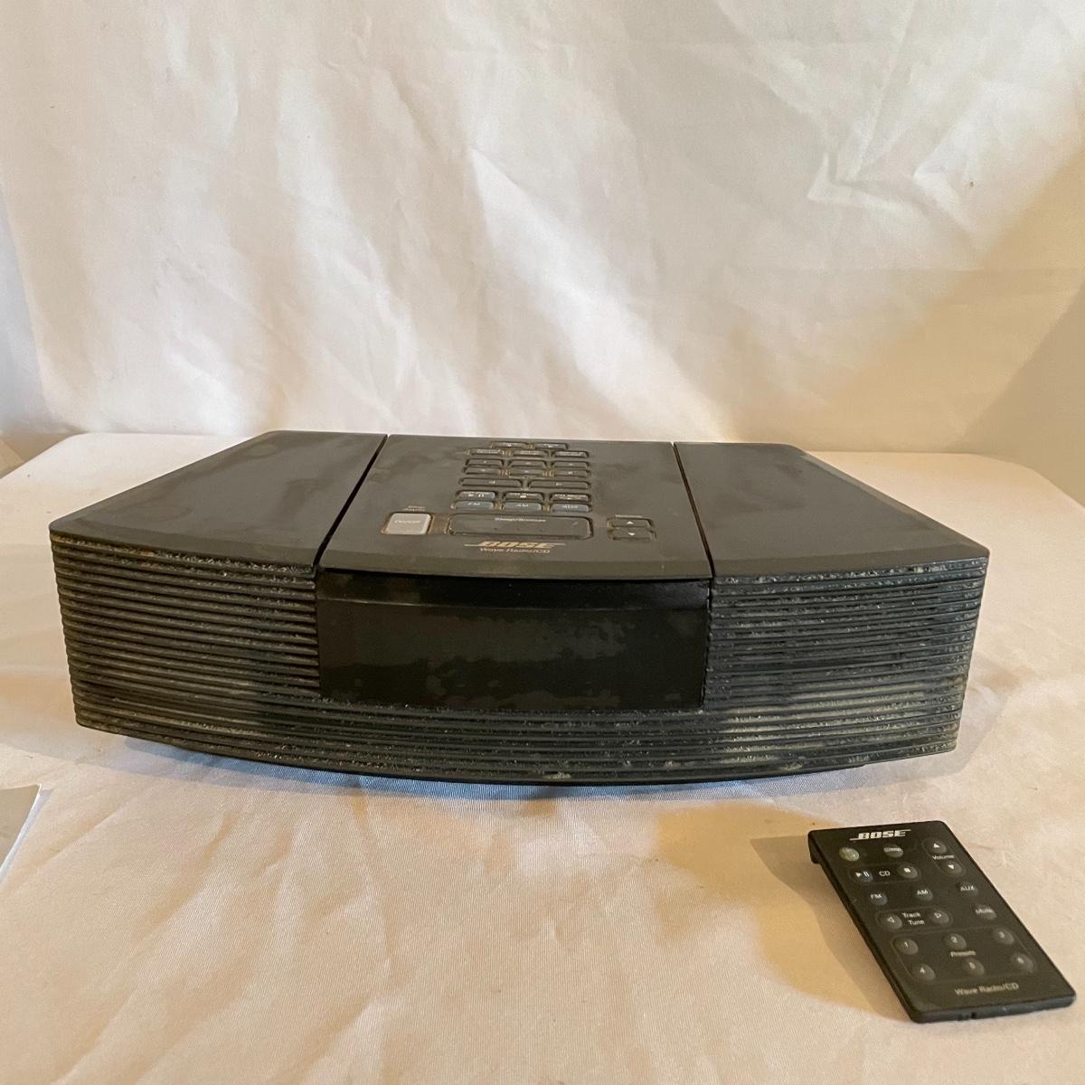 Hear your music with this famous Bose speaker! Model AWRC1G Wave Radio & CD player. This speaker turned on and played the radio, we did not test the CD or remote function. It has been stored in a work shop and is fairly dusty, probably some cleaning will get it looking new again. See images. Local pick up only.