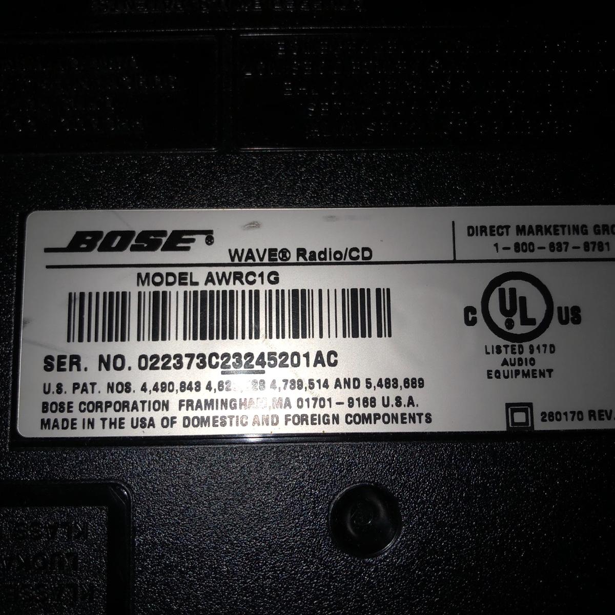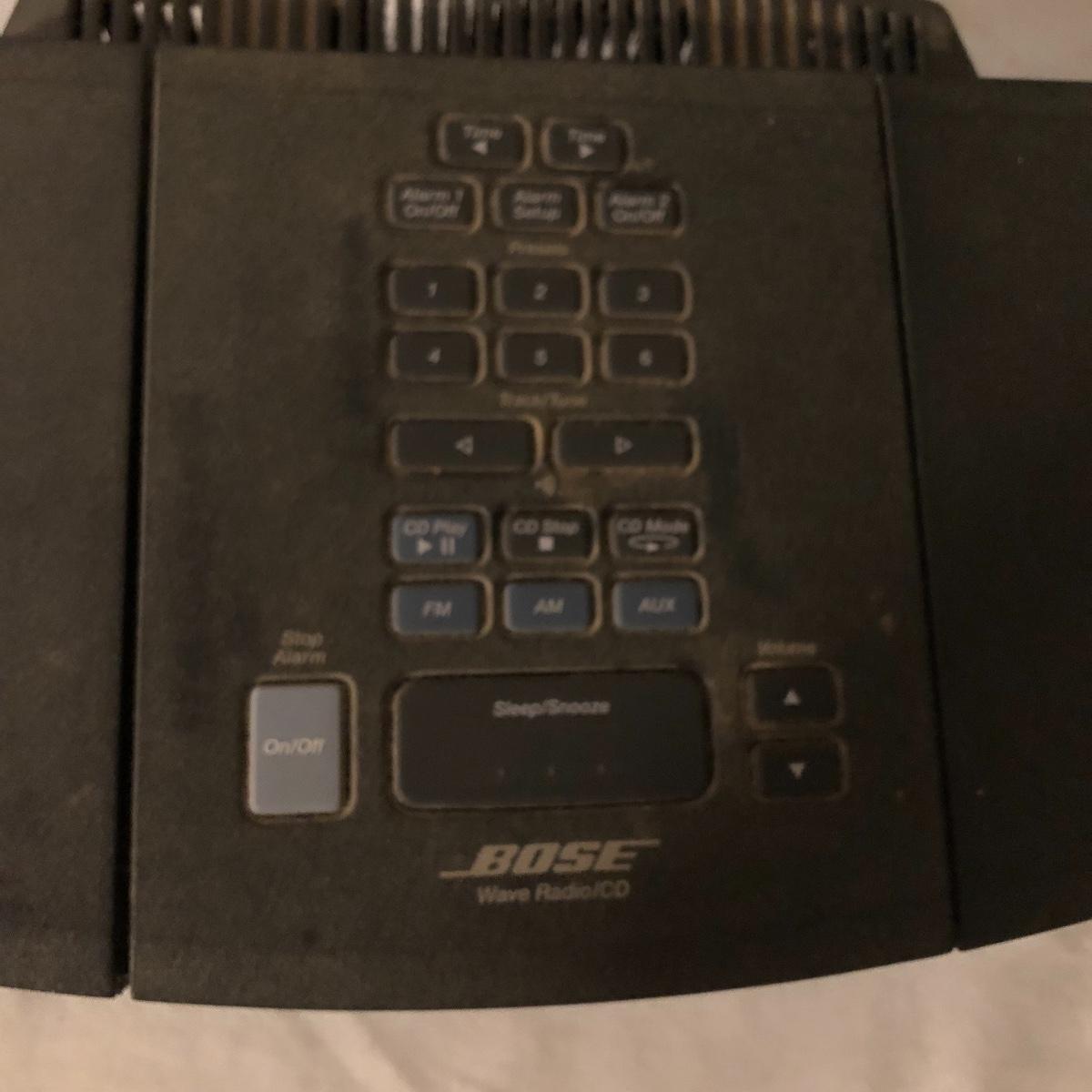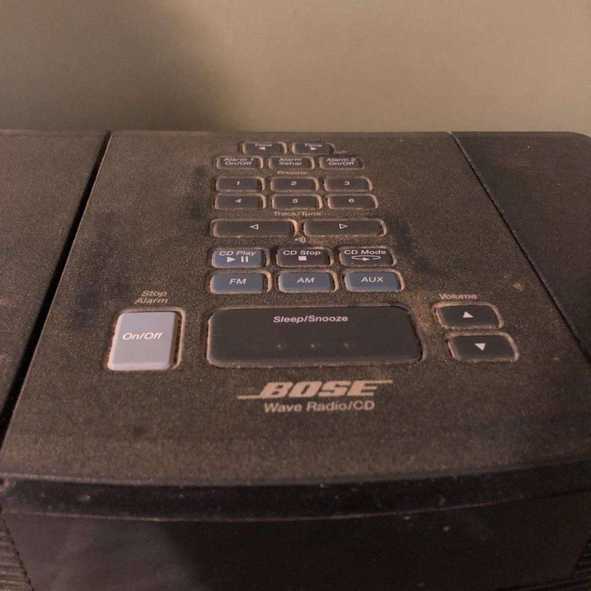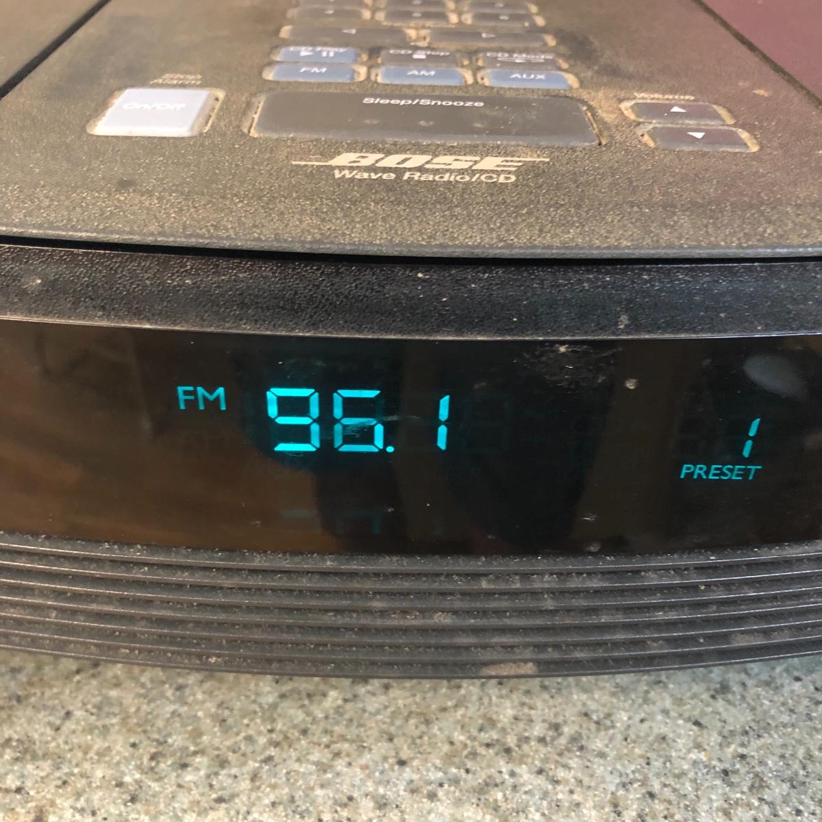 Hear your music with this famous Bose speaker! Model AWRC1G Wave Radio & CD player. This speaker turned on and played the radio, we did not test the CD or remote function. It has been stored in a work shop and is fairly dusty, probably some cleaning will get it looking new again. See images. Local pick up only.