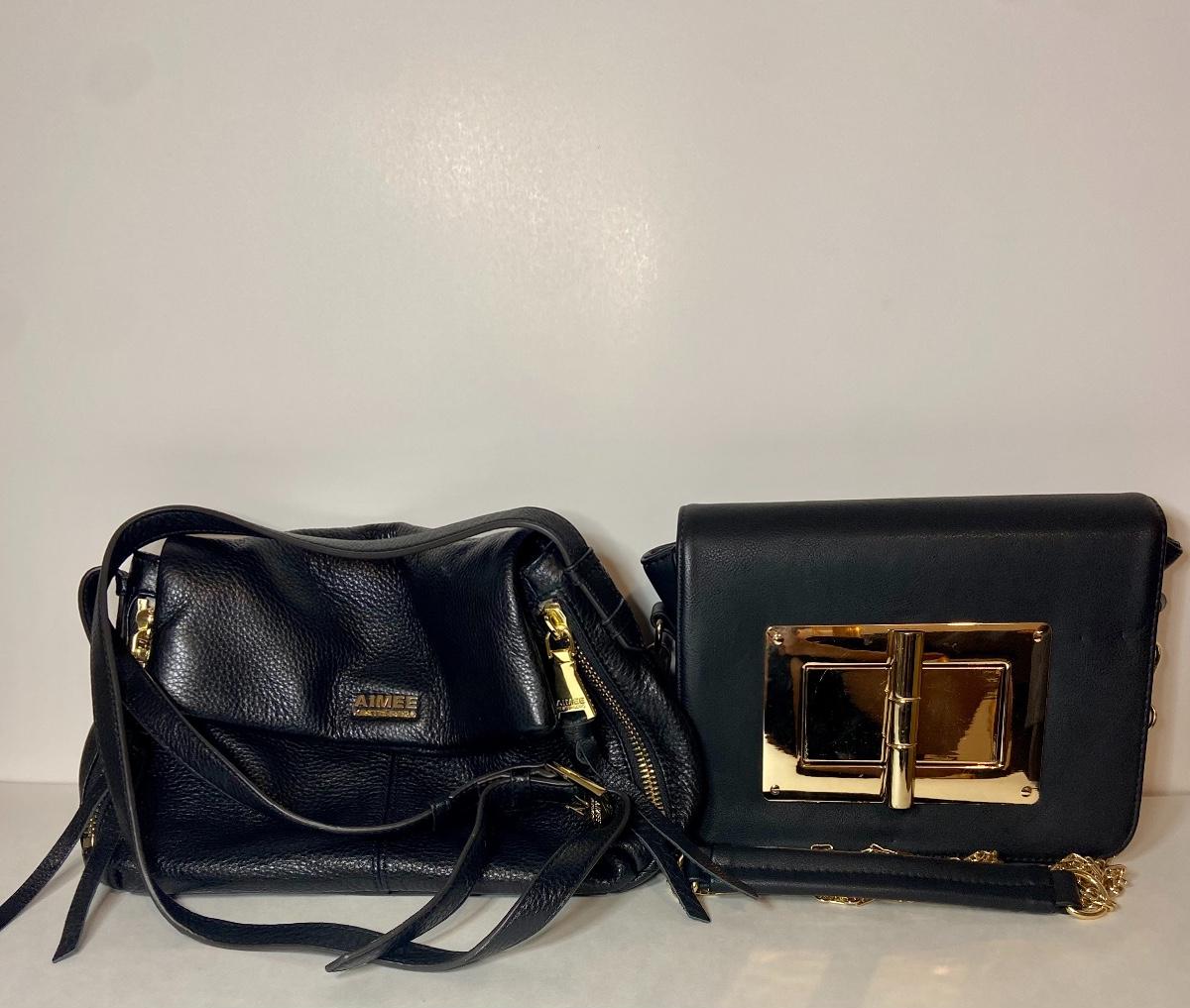 Lovely Aimee Kestenberg black leather handbag with gold hardware, and a faux leather fashion handbag. Both are pre-owned in gently worn condition. We can't authenticate any of the handbags. We can only list according to the brand and the age shown. Please use your judgement and see all pictures as they are the best representation of the items. The pictures show condition, measurements if taken, and what is included in the lot. Due to the large amount that we photograph and the time frame, we are not always able to take measurements. All items unless noted, are pre-owned and have been used. If you purchased furniture, you must bring help. We do not allow one person to carry large furniture out on their own. Bring help, tools and a truck for the safety of our client’s homes, and your personal safety. Company policy. Thank you