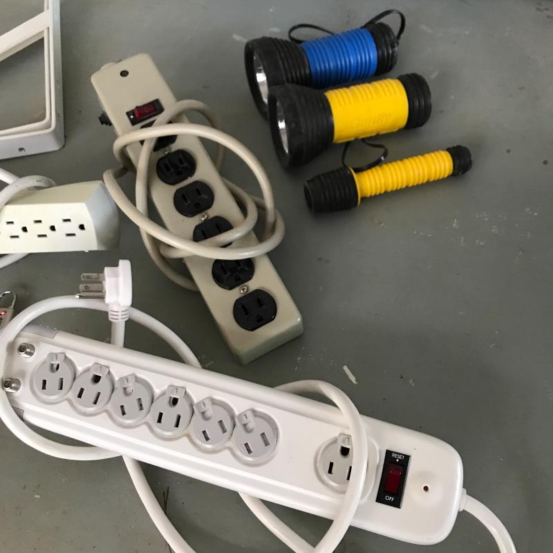 Three flashlights by Garrity. Three surge protectors. New cork and felt pads. Two shelf brackets. Shipping or local pick up in Flat Rock, NC.