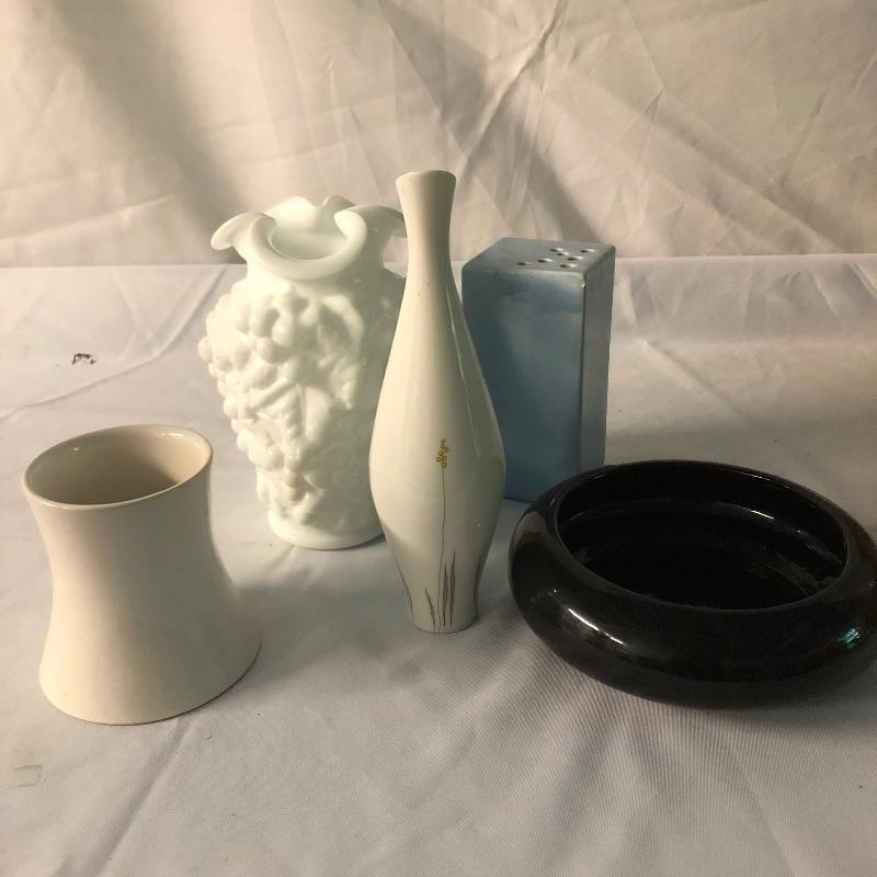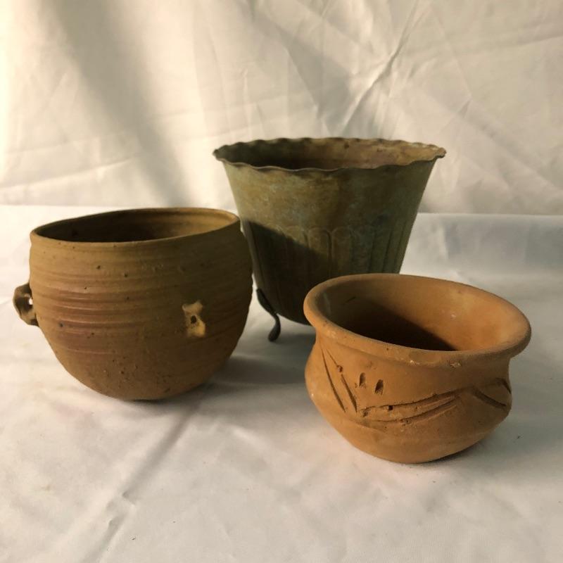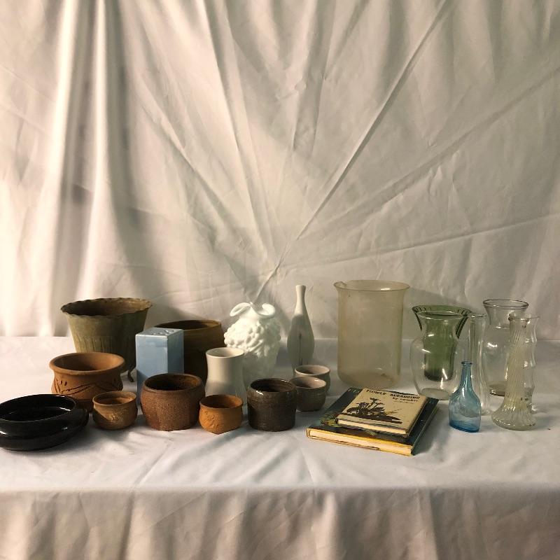 Trying to go green during quarantine? This lot is the perfected starter kit! In this lot there 9 clay pots, 13 glassware like vases, 2 flower arrangement books, and a trio of live house plants. Cannot guarantee the health of the plants by the time of pick up. Most pots seem to be handmade. Largest pot is about 9” x 8”. Largest vase is about 10” x 7.5”. Local pickup only.