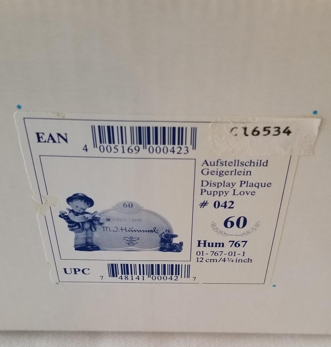 HUMMEL 60th Anniversary sign - dated 1995 - has the box. 7" across. PIece is called "Puppy Love" - this was a special edition. Good condition.