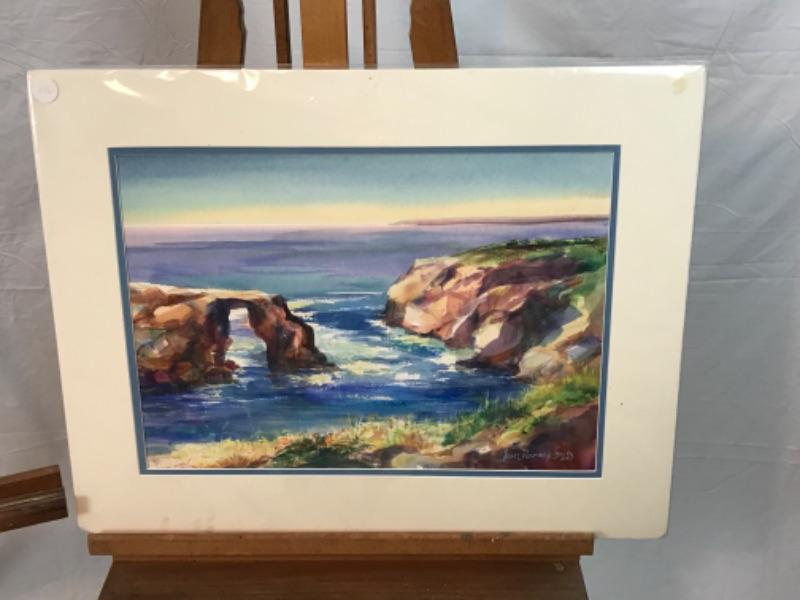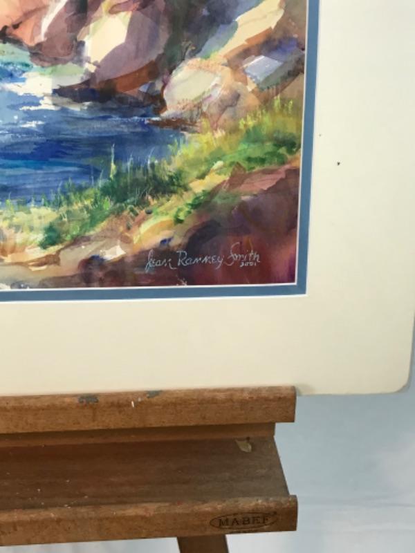 Jean Ranney Smith signed original watercolor painting “Seaside View” measures 26”x20-1/2” including mat