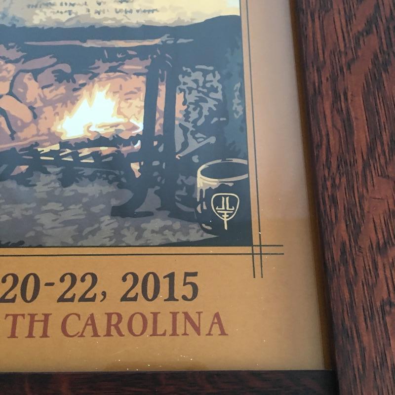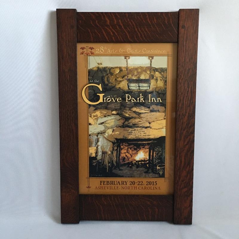 Julie Leidel signed conference poster with handcrafted frame by Family Woodworks. This Grove Park Inn twenty eighth annual Arts & Crafts conference in 2015 has one of the nicest settings of the iconic Great Hall Fireplace..