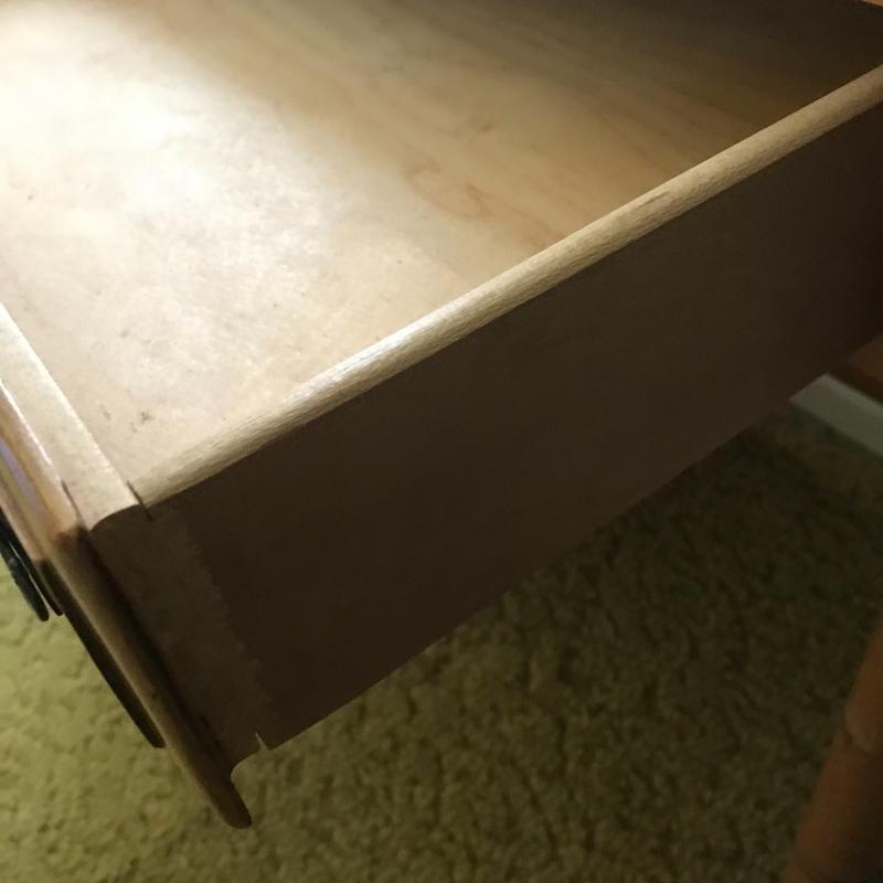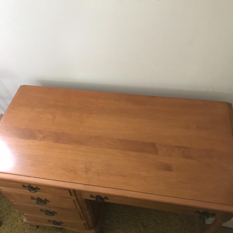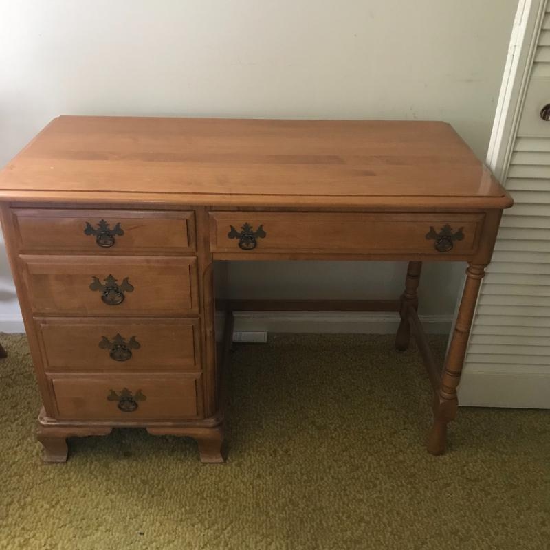 Solid Maple desk with brass hardware measures 42” x20.5” x30”. See pix for few scratches. Local pickup only.