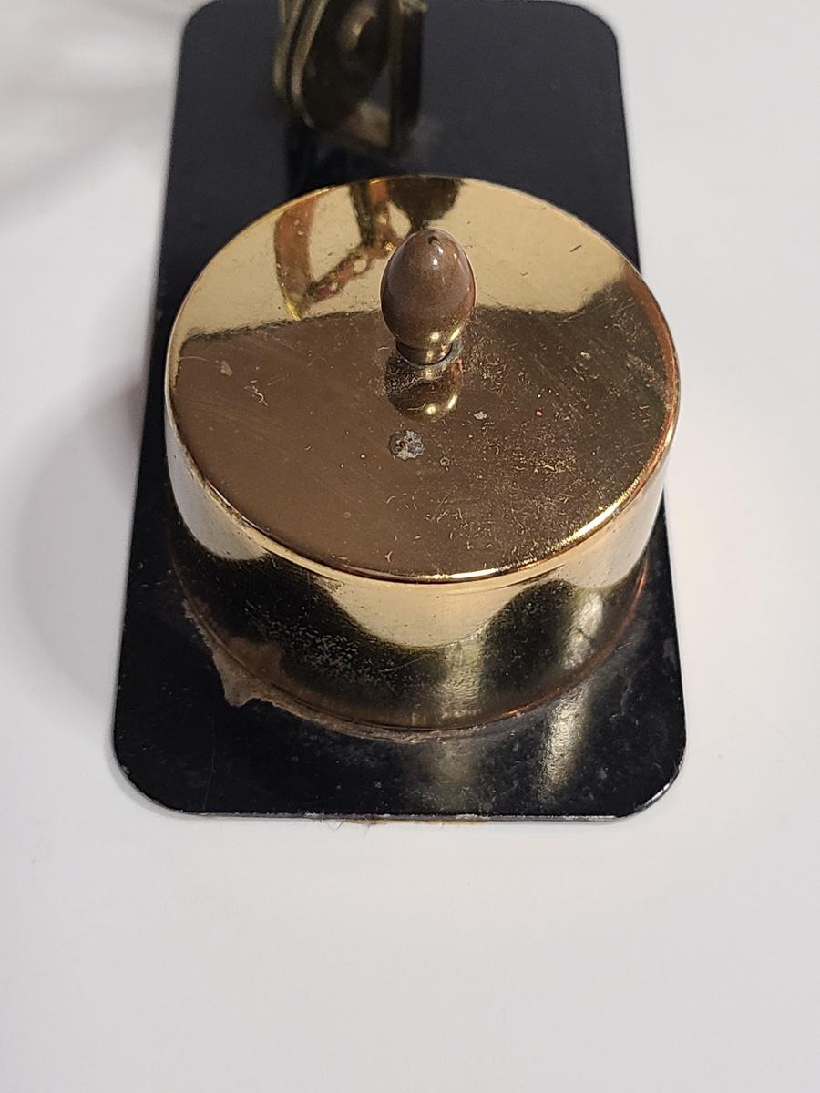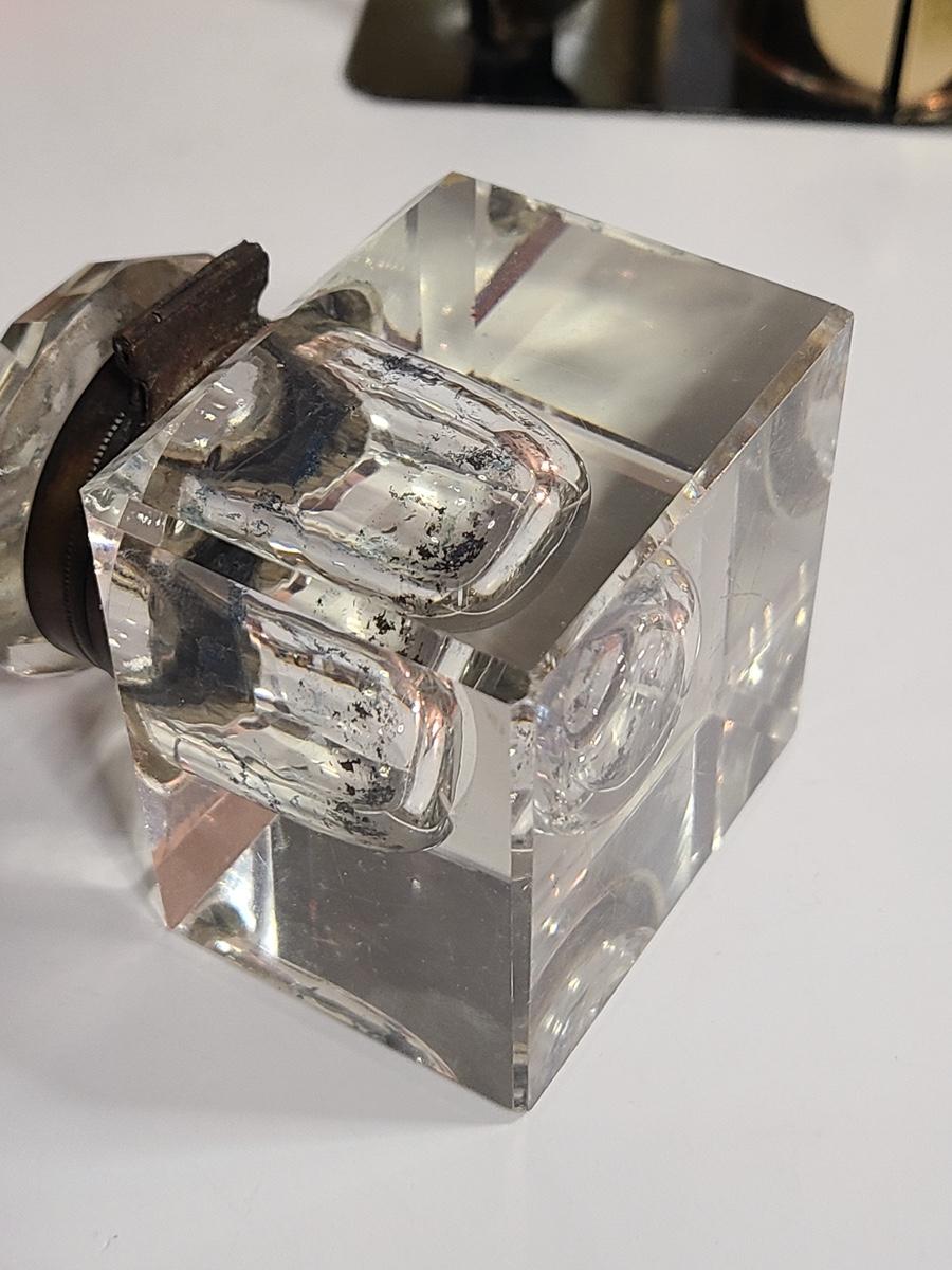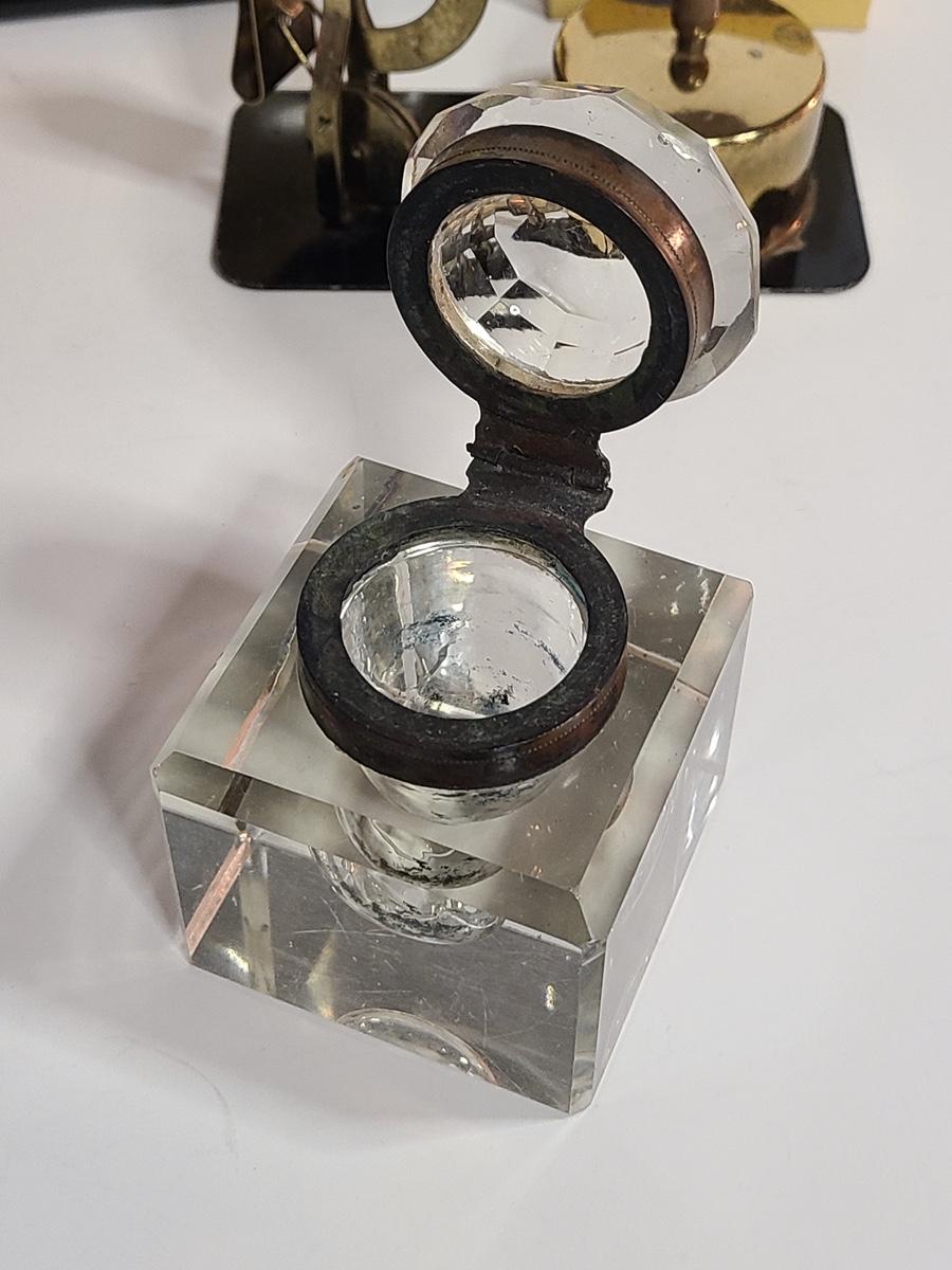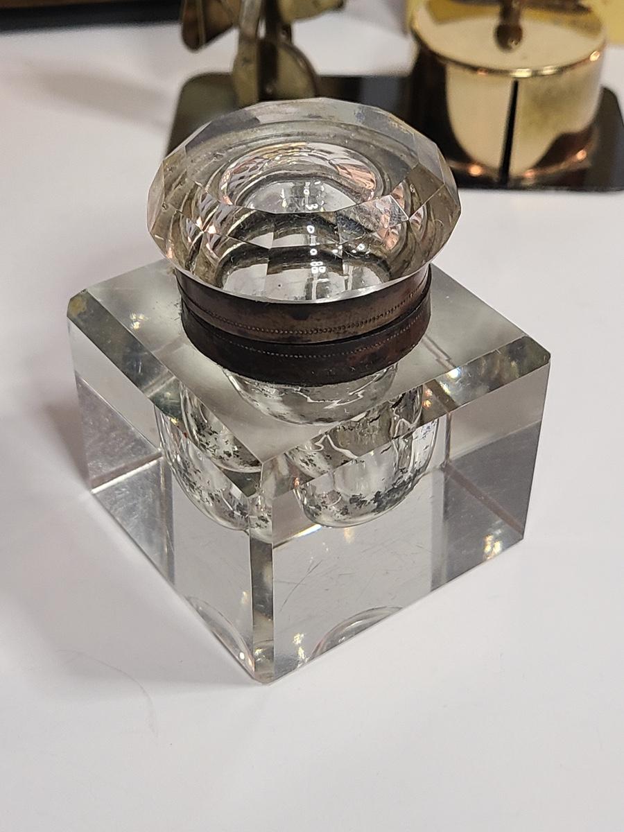 These pieces are gorgeous. The small alarm clock is new in the box, and the electric clock looks new, has sleek design and works! The inkwell shows wear to the metal and the interior has some staining but no noticeable wear to the crystal well. Also included is vintage postal scale/stamp dispenser, and new old stock Waterman's Ink. The pictures show condition, measurements if taken, and what is included in the lot. Due to the large amount that we photograph and the time frame, we are not always able to take measurements. All items unless noted, are pre-owned and have been used. If you purchased furniture, you must bring help. We do not allow one person to carry large furniture out on their own. Bring help, tools and a truck for the safety of our client’s homes, and your personal safety. Company policy. Thank you.