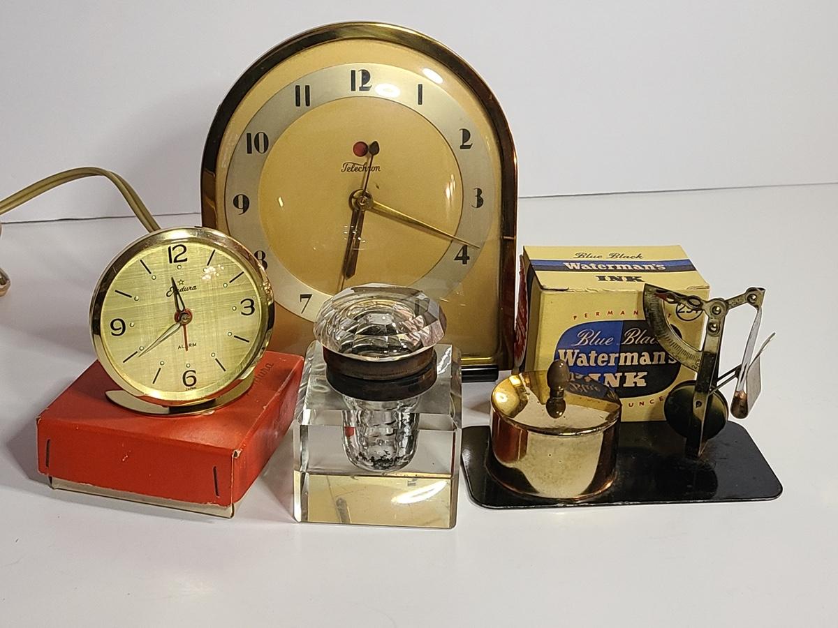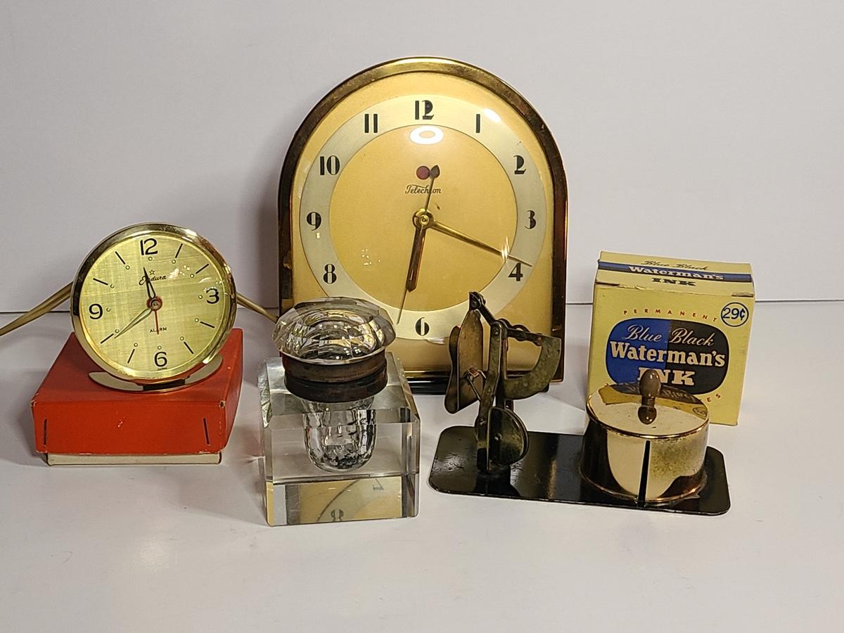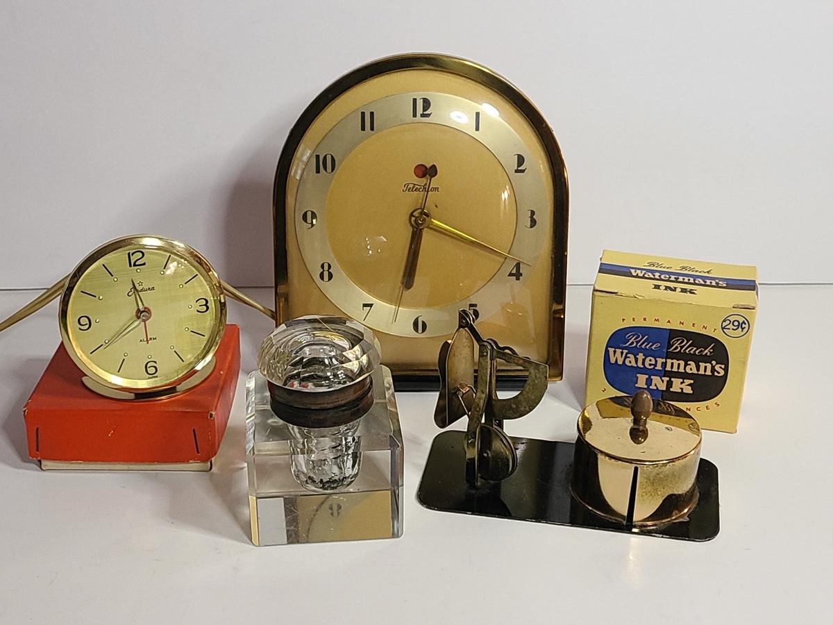Lot 198: MCM Clocks, Inkwell, Ink and More