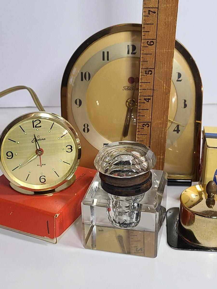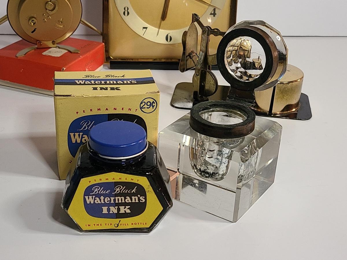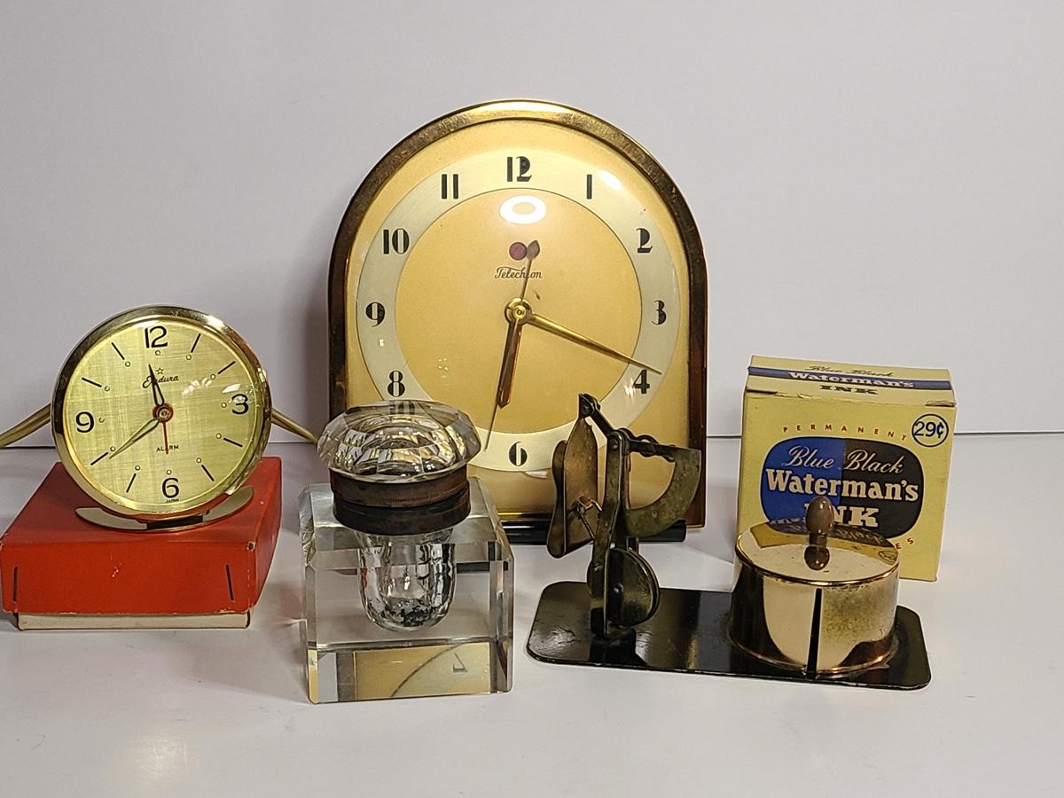 Lot 198: MCM Clocks, Inkwell, Ink and More
