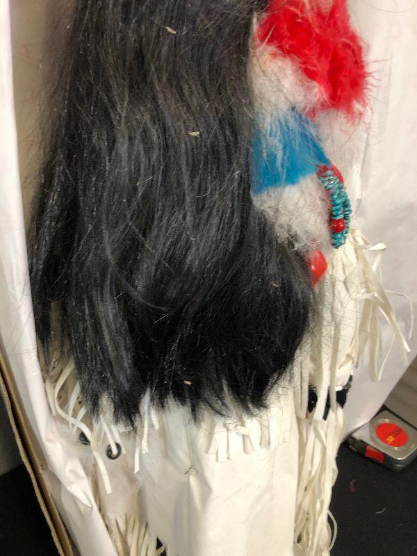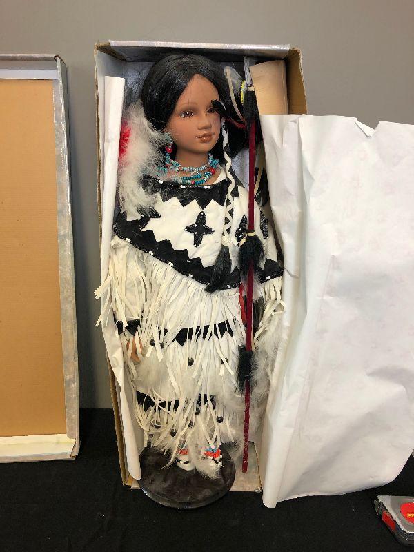 Lot# 198 Native American Porcelain Doll With Spear in White Tradition Dress