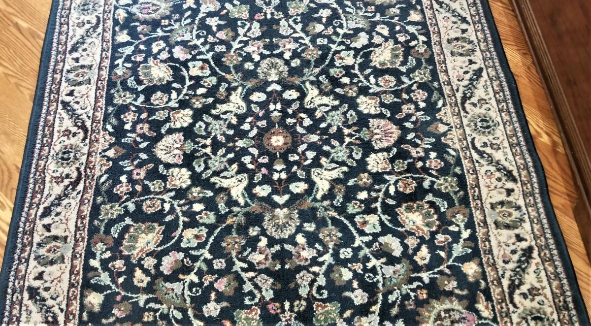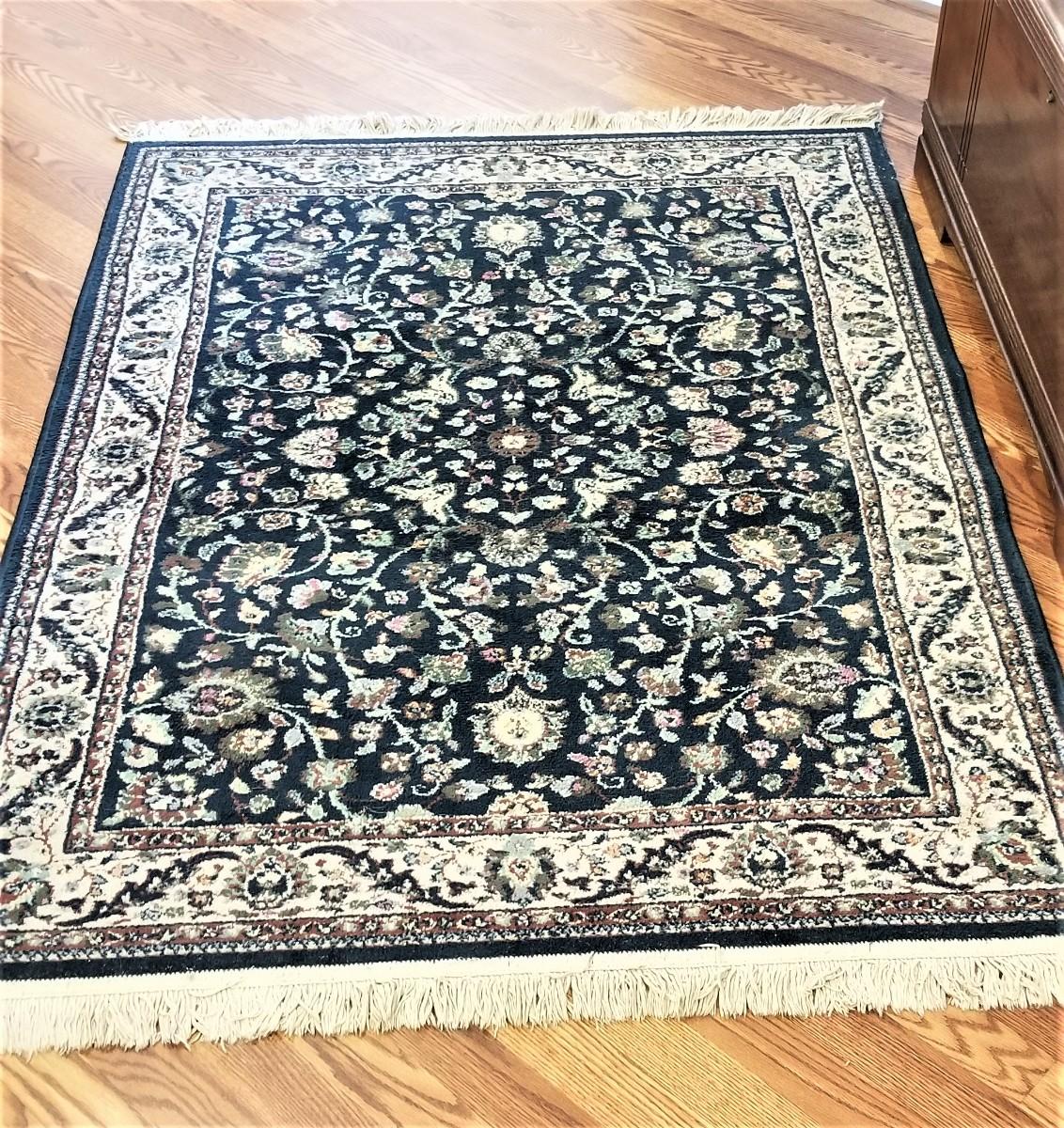 Rhodus III Decorator rug - Navy - Sarouk pattern - 3' 11" x 5' 8". Good used condition. Machine made.