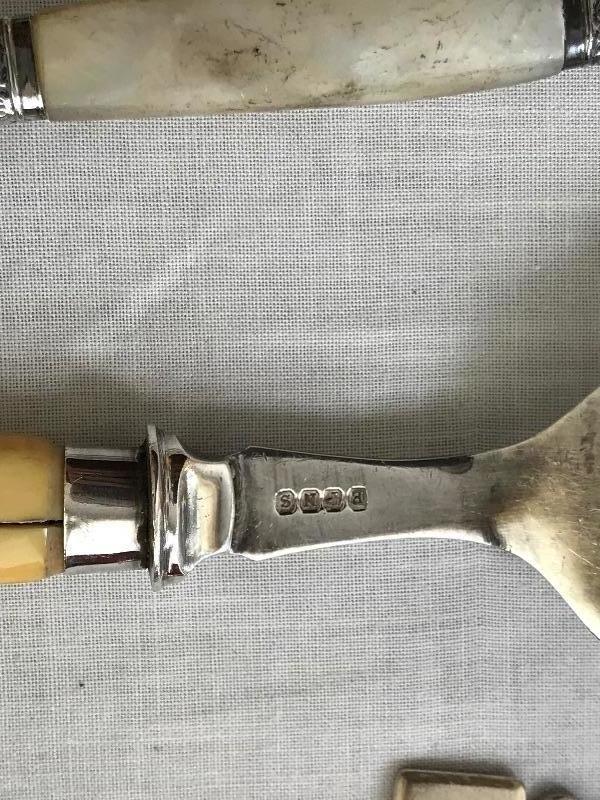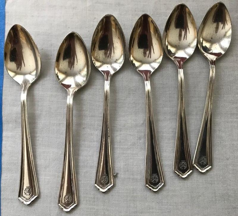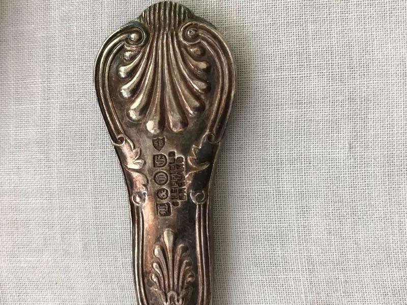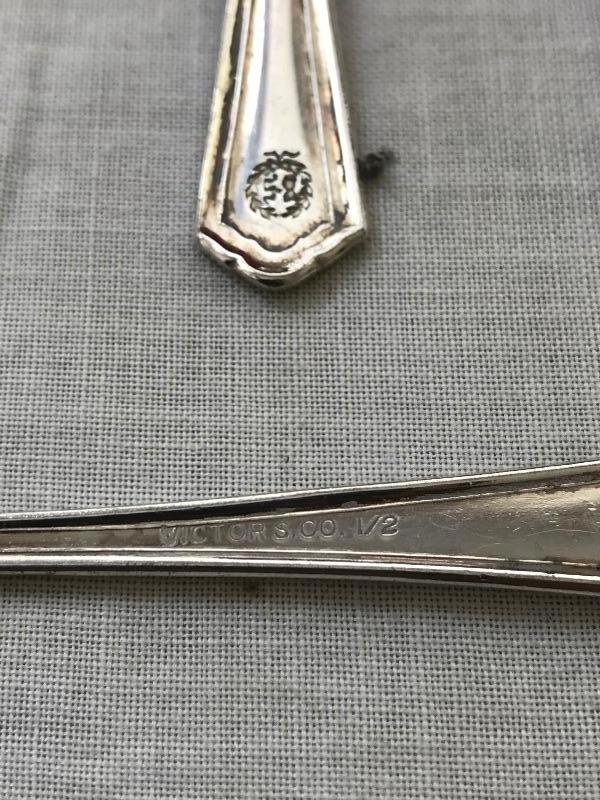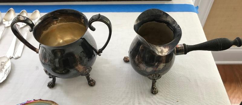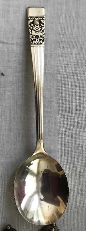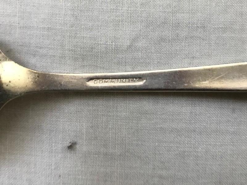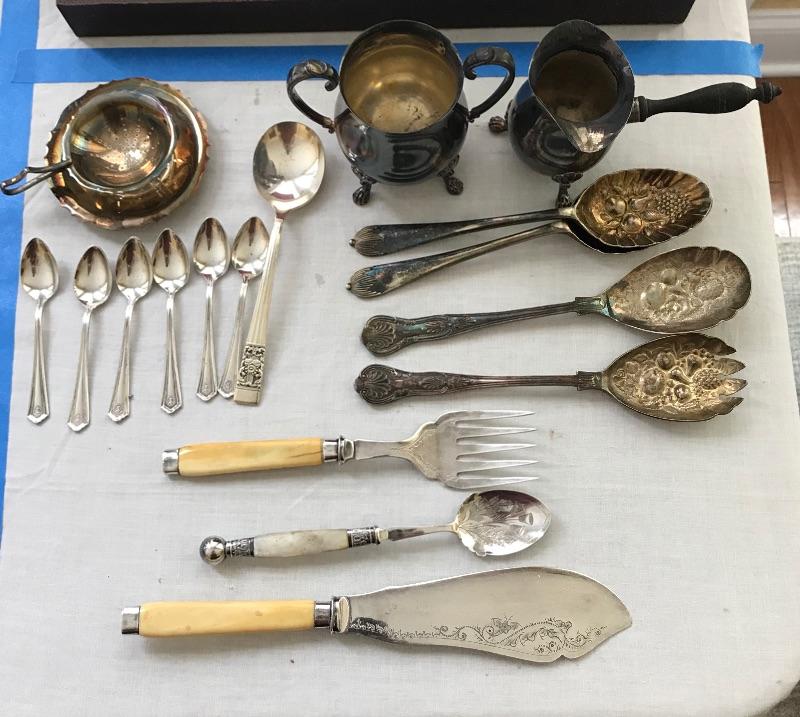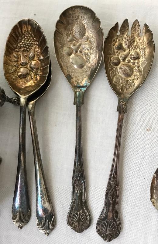 Assorted silver plate pieces. Sheffield serving spoons, Community soup spoon, Victors sugar spoon, Crescent cream and sugar