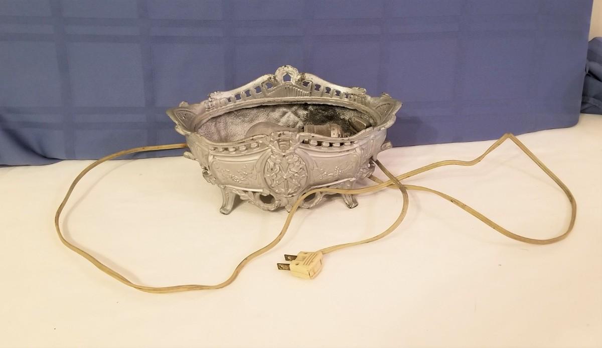 Vintage metal tv lamp cast good ambient light - no switch, plugs directly into wall. Heavy. Measures 9.5" across