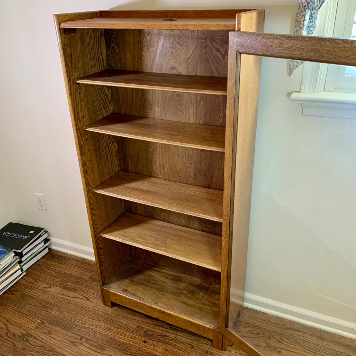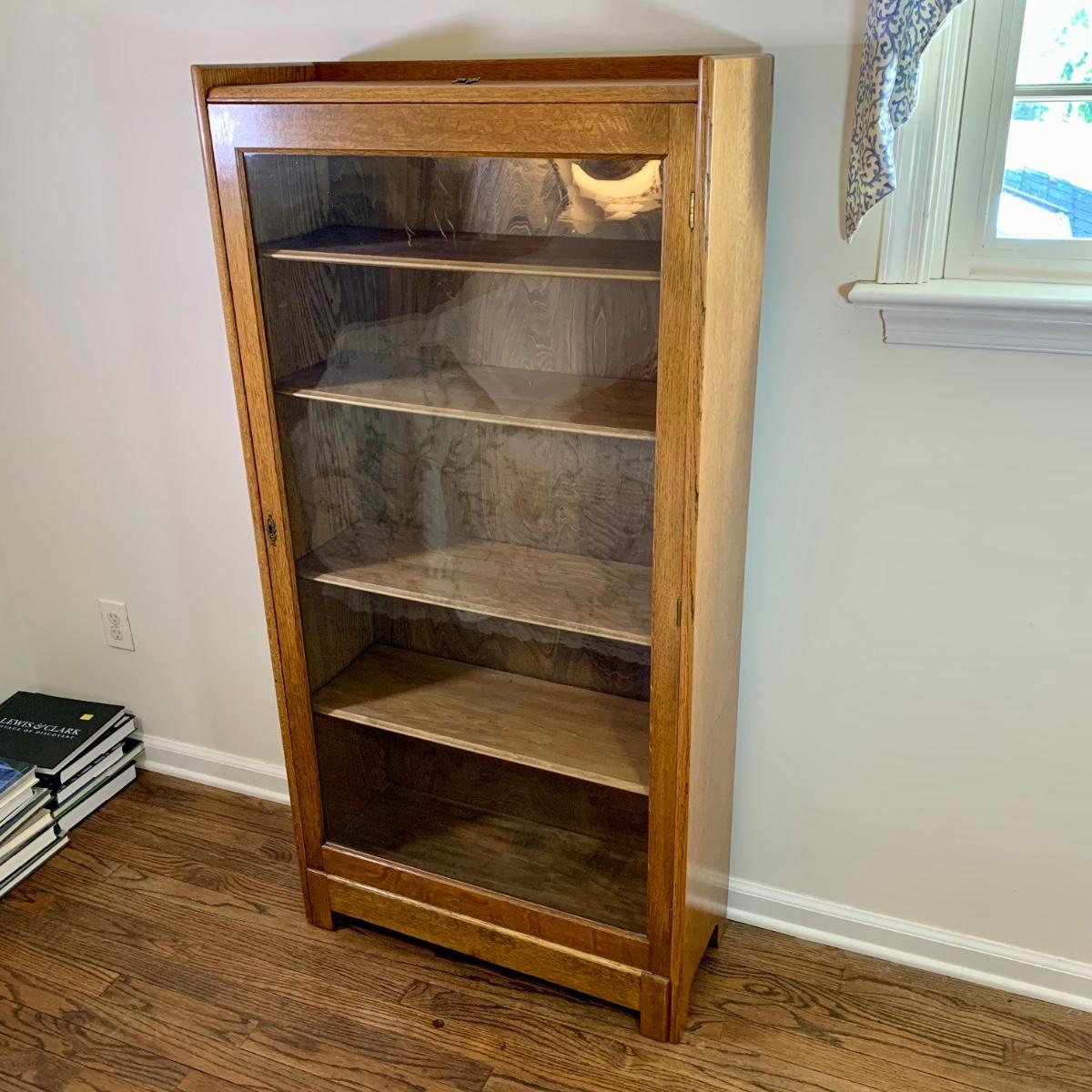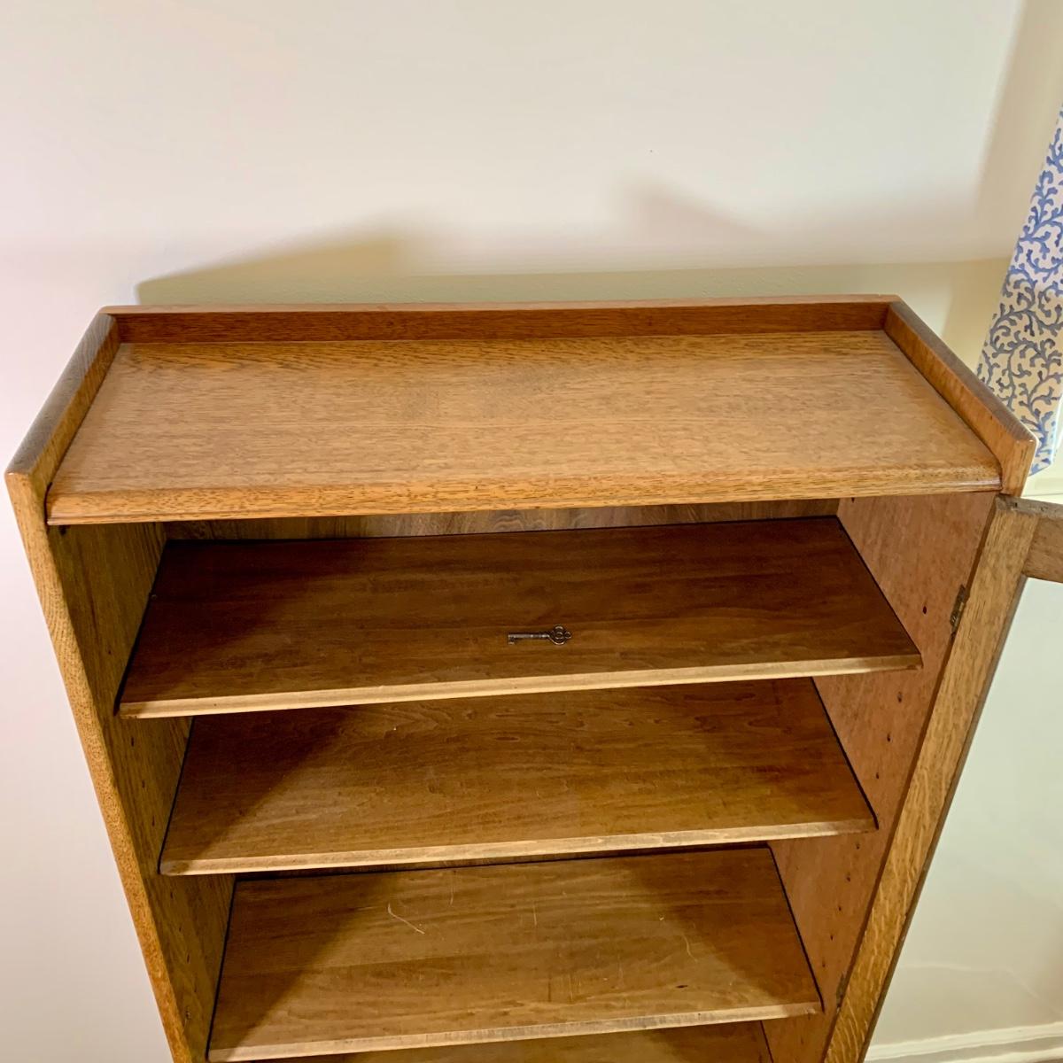 LOT 198 Z: 5 Shelf Singular Glass Paned Door Vintage Bookshelf/ Cabinet & Key