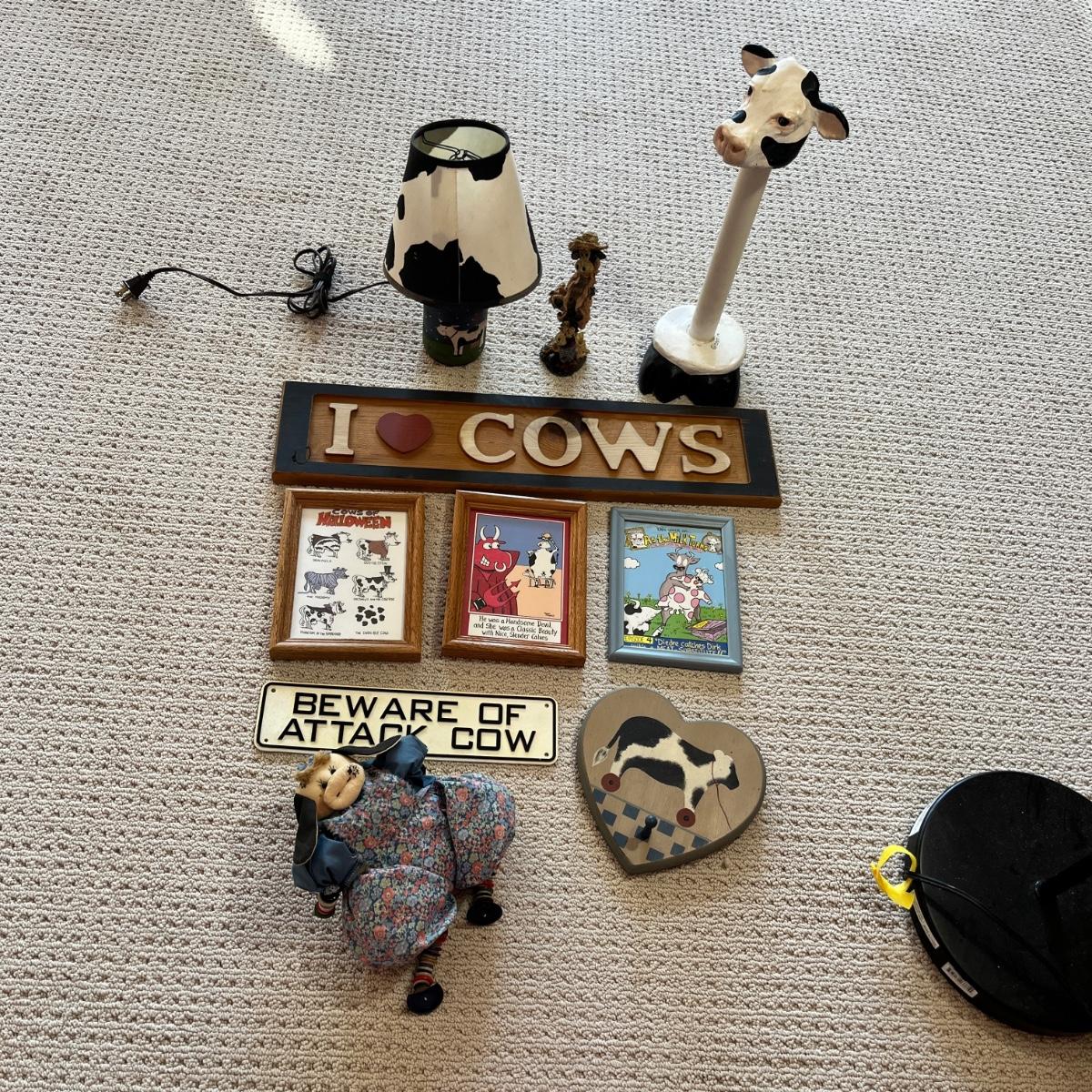 Cow décor - paper towel holder, lamp framed prints and more