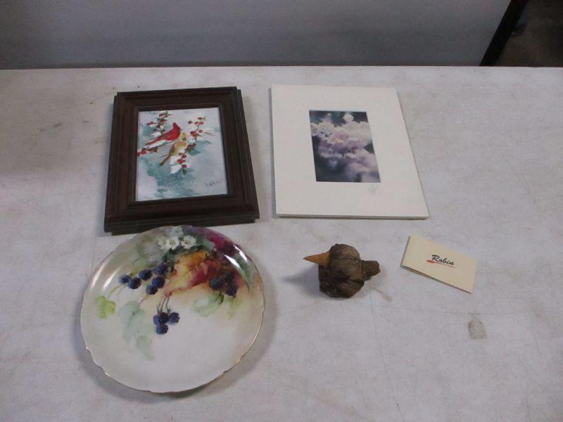 Lot 199 - Painting = Photograph - Plate - Carved Bird