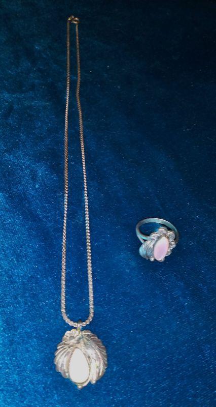 STERLING RING WEIGHS 3.4g, PENDANT & CHAIN WEIGHS 7.94g
