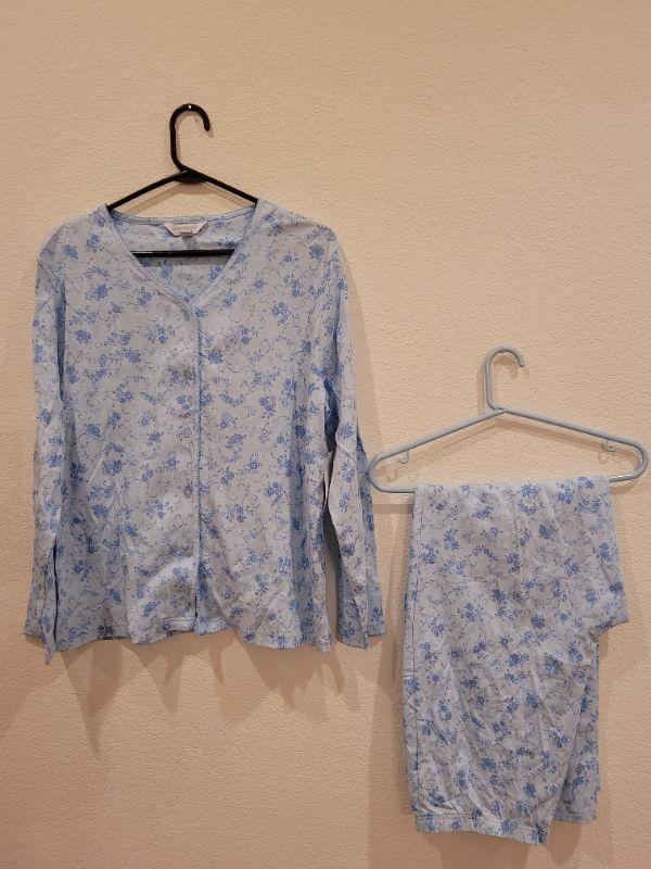 Lot 199: New Long Sleeve Button Down Pj Top and Pants Set